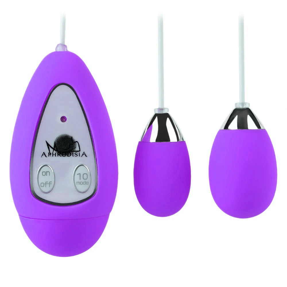 Виброяйцо с 10 режимами вибрации. Сделано из абсолютно гладкого пластика с нежным покрытием и с выносным пультом управления с различными уровнями вибрации. Несмотря на свой небольшой размер, обладает довольно мощным моторчиком. Работает от двух батареек ААА (в комплект не входят). Размер: диаметр 2 см и 1,5 см высота 4 см и 3,5 см. Цвет: фиолетовый. Для более комфортного использования рекомендуем смазку на водной основе и очищающий спрей Clear Toy 100 мл.