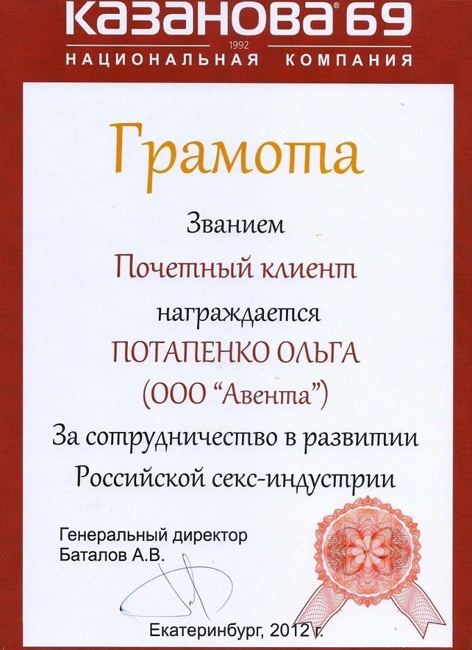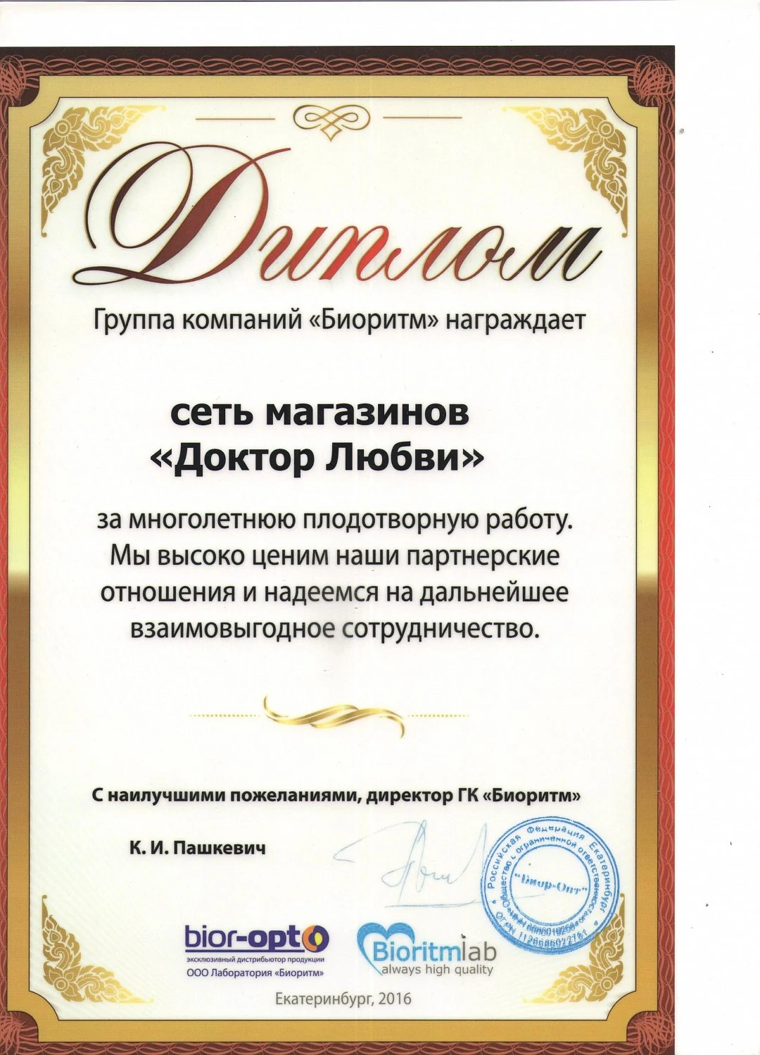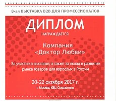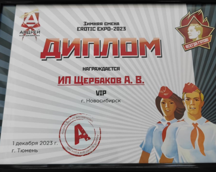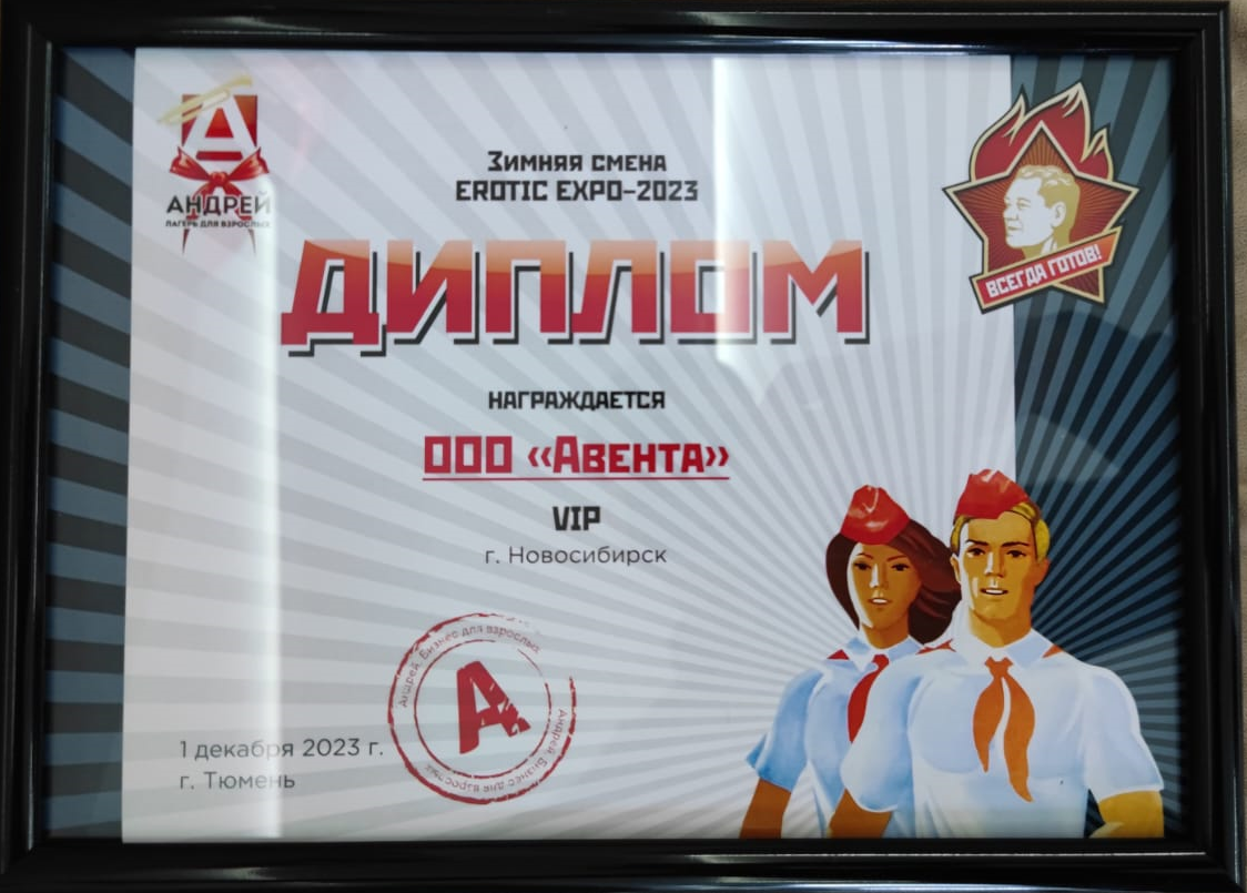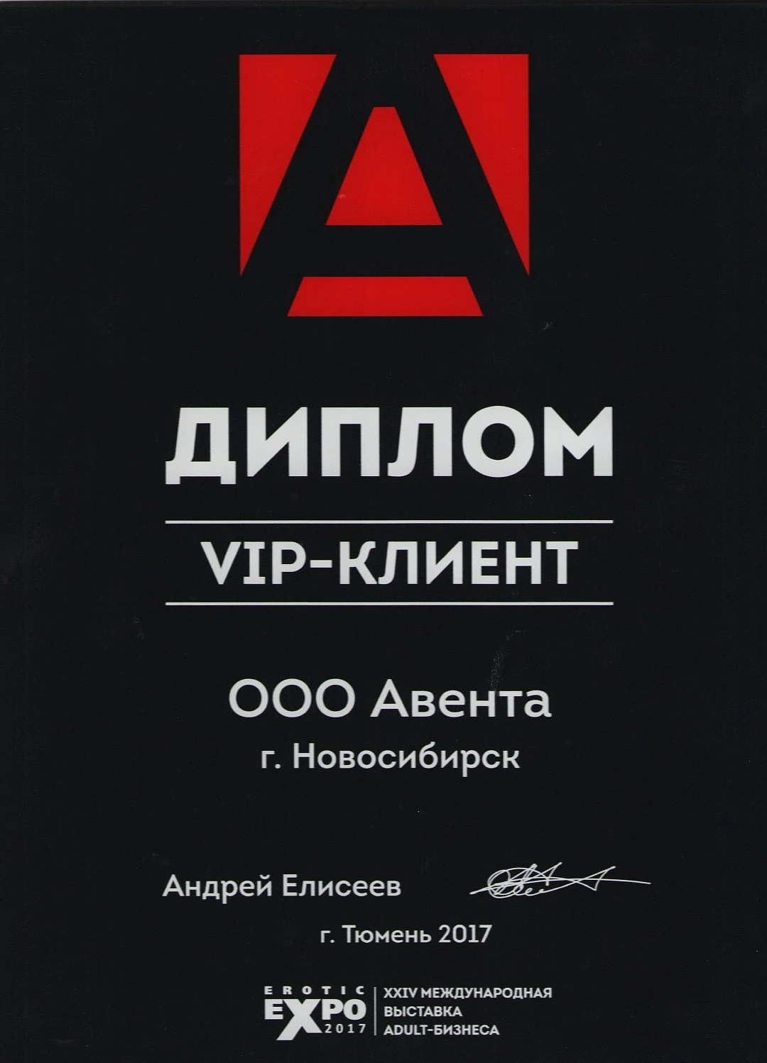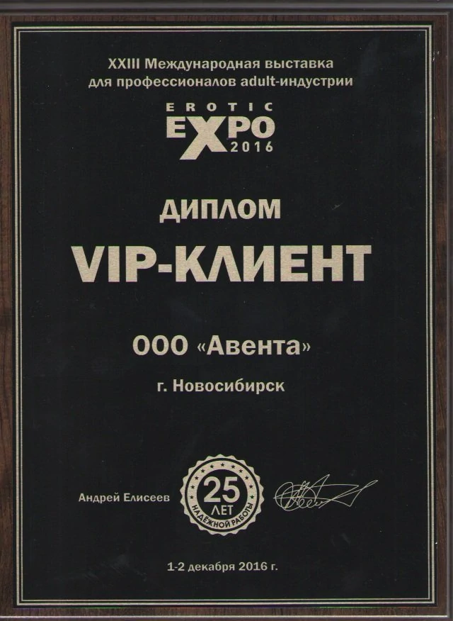 ДИПЛОМ EROTIC EXPO 2016 VIP-клиенту лидеру продаж в РФ