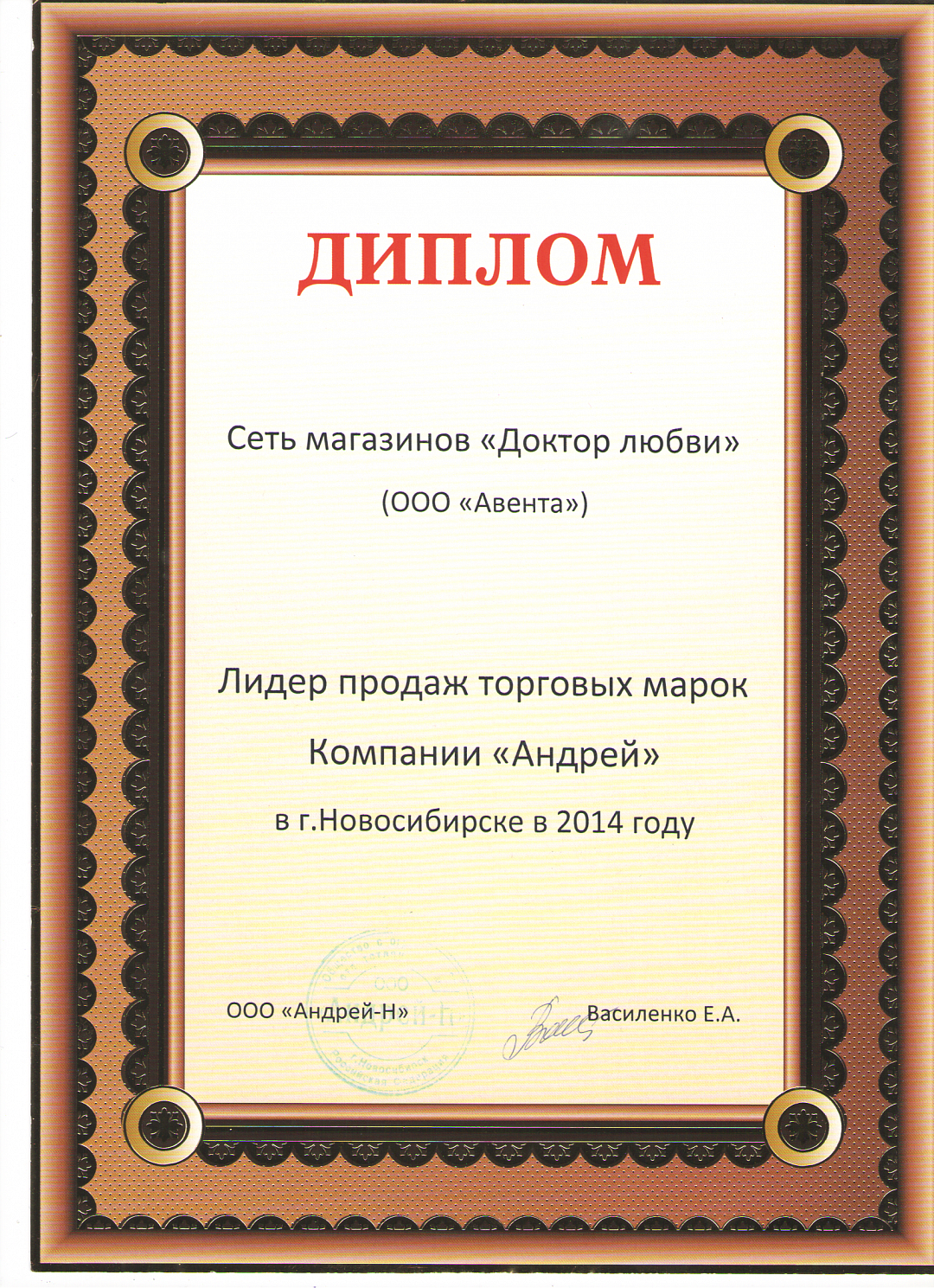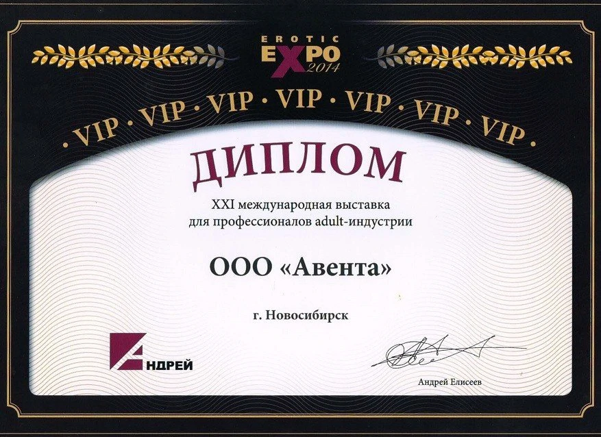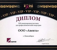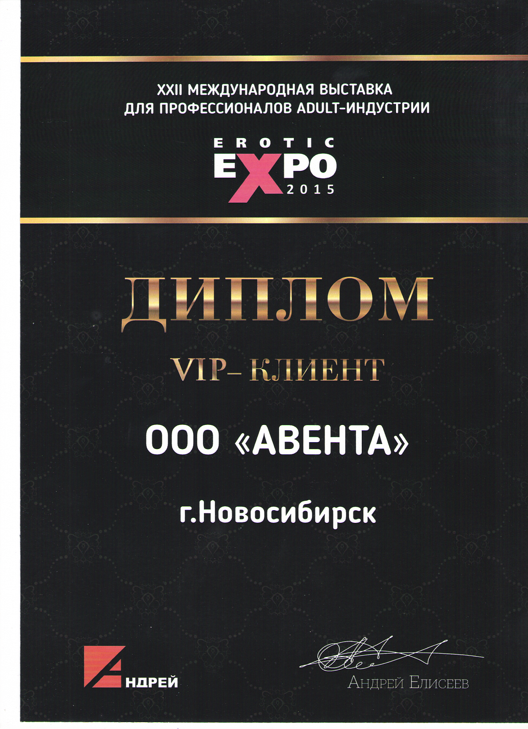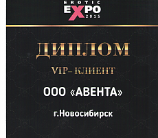 ДИПЛОМ EROTIC EXPO 2015 VIP-клиенту лидеру продаж в РФ