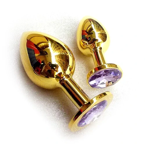 Стильная, гладкая, сверкающая, большая, глубоко проникающая, наполняющая – именно такими эпитетами можно охарактеризовать эту анальную втулку. Она выполнена из стали с позолотой и украшена большим фиолетовым кристаллом на основании. Изготовлена из нержавеющей стали и является 100% гиппоаллергенной. Не вызывает раздражение и индивидуальную непереносимость материала. Размер: длина 9 см, диаметр 4 см. Цвет: фиолетовый. Для более комфортного использования рекомендуем приобрести смазку на водной или силиконовой основе и очищающий спрей Clear Toy 100 мл для обработки изделия.