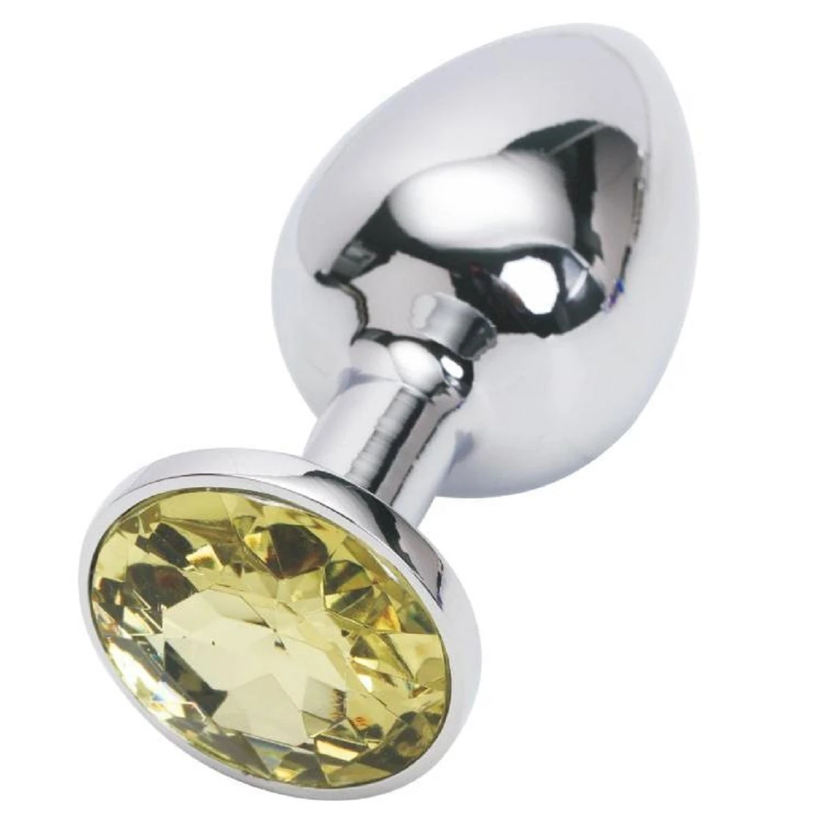 Стильная, гладкая, сверкающая, большая, глубоко проникающая, наполняющая – именно такими эпитетами можно охарактеризовать эту анальную пробку. Она выполнена из стали и украшена большим желтым кристаллом на основании. Пробка является как секс-игрушкой, способной доставить немало удовольствия, так и роскошным интимным украшением. Изготовлена из нержавеющей стали, без запаха и является 100% гиппоаллергенной. Не вызывает раздражение и индивидуальную непереносимость материала. Для более комфортного использования рекомендуем смазку на водной основе и очищающий спрей Clear Toy 100 мл. Размер: длина 9 см, диаметр 4 см. Цвет: серебро, цвет кристалла желтый.