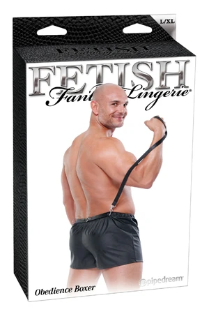 Просторные боксеры из нейлона с поводком, который крепиться к кольцу на трусах. Размер: 2XL/3XL. Цвет: черный.