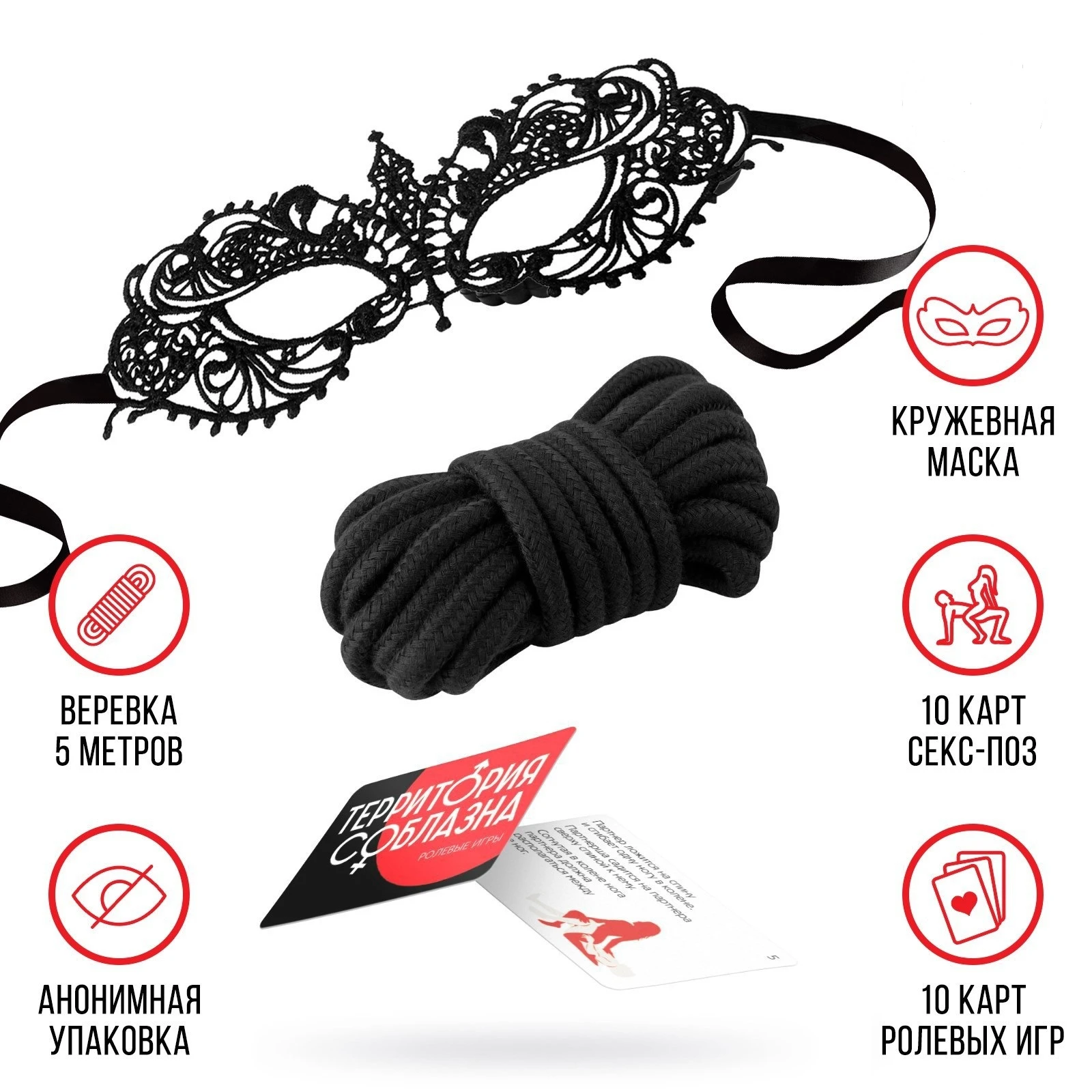 Этот набор позволит вам разнообразить сексуальную жизнь и добавить в неё немного перчинки. Вас ждут 20 карт из серии Территория соблазна, которые включают в себя горячие ролевые игры и позы для секса. Начните с ролевых игр. Разыгрывайте чарующие сценарии, а когда почувствуете, что время пришло, переходите к позам. Также в комплект входят кружевная маска и верёвка, которые можно использовать в процессе игры. Прелесть этого набора заключается в анонимной упаковке. Ни один человек не догадается, сколько удовольствия прячется в маленьком пакете. Это будет только ваш секрет! Благодаря специальным отсечкам на пакете и механизму ziplock вы можете быть уверены в целостности упаковки и её содержимого.