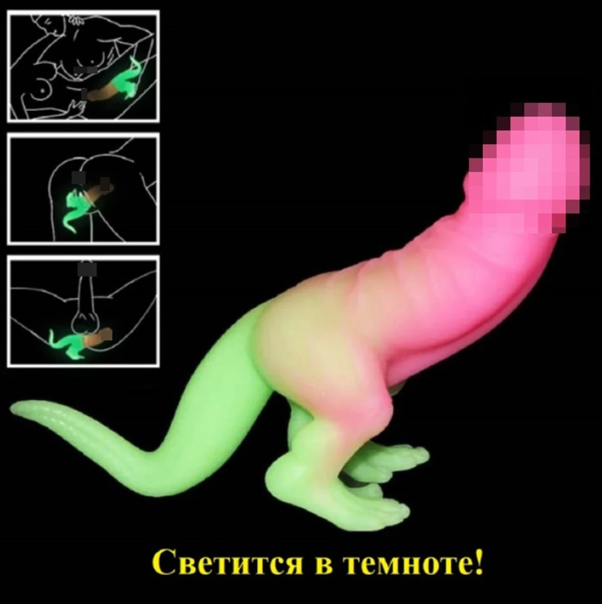 Забавный фаллоимитатор Членозавр в виде динозавра станет самой яркой секс-игрушкой в Вашей коллекции! Изготовлен из очень мягкого силикона с выделенными венками и складками. Гибкий ствол быстро принимает тепло тела. Кроме необычной формы Членозавр имеет еще одну особенность-он светится в темноте, так что Вы не потеряете его даже в кромешной тьме! Также Членозавр станет забавным подарком для людей с чувством юмора. Светящиеся в темноте изделия необходимо зарядить солнечным светом несколько часов, прежде чем наслаждаться ими в темноте. Размер: общая длина 31 см, рабочая длина 11,5 см, диаметр 4,7 см. Для более комфортного использования рекомендуем приобрести смазку на водной основе и очищающий спрей Clear Toy 100 мл для обработки изделия.