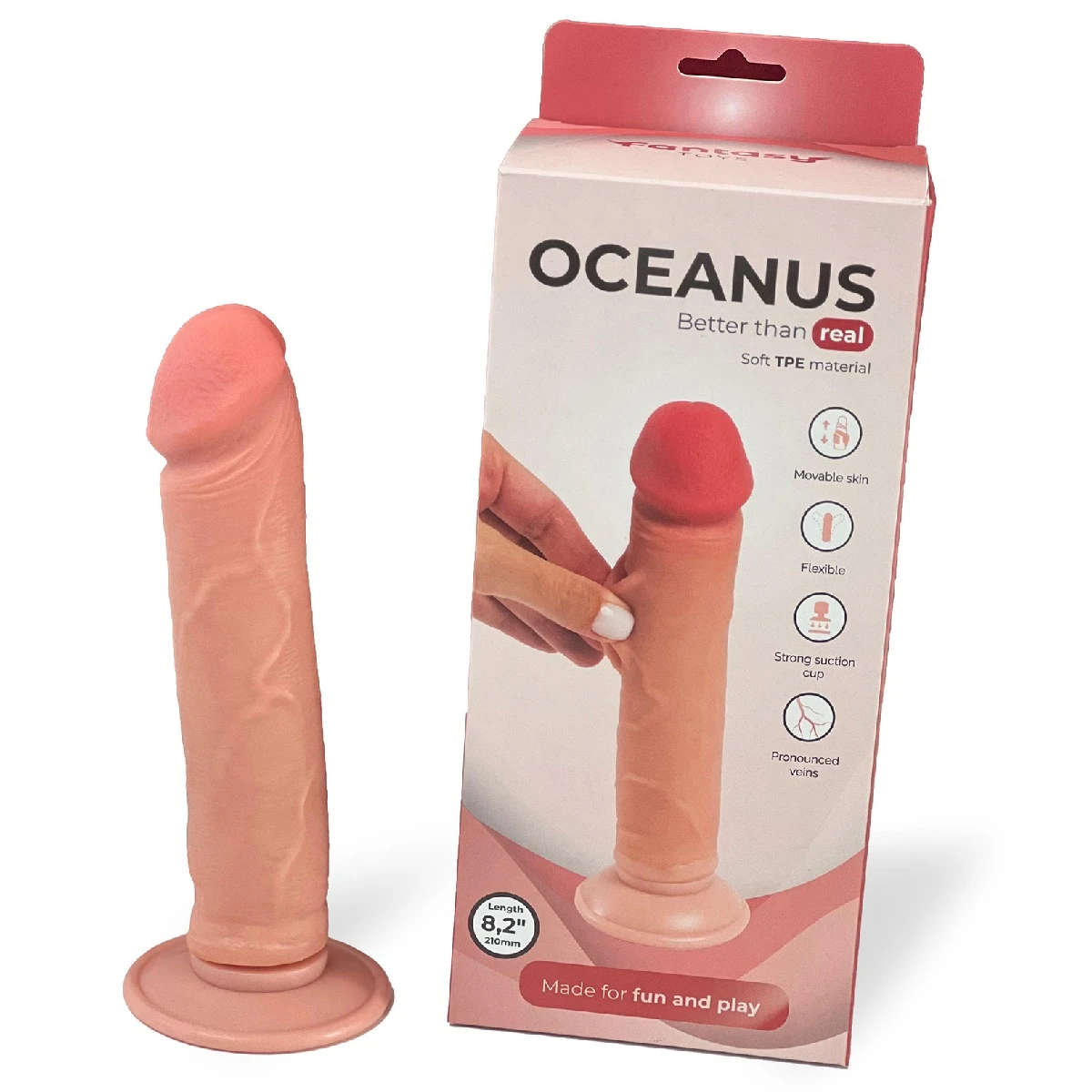 Представляем Oceanus от бренда Fantasy Toys – идеальный спутник в ваших интимных приключениях. Двухслойный ультрареалистичный фаллоимитатор с подвижной кожей. Его реалистичные пропорции, рельефные вены и нежная головка сразу погружают в атмосферу настоящего удовольствия. Выделяющаяся головка отлично качественно простимулирует самые требовательные эрогенные зоны. Уверены, что ваша зона G будет в восторге от знакомства с Oceanus. Изготовлен из качественного материала TPE. Прочная, эластичная присоска позволяет зафиксировать игрушку на любой гладкой поверхности. Размер: длина 21 см, рабочая длина 18,5 см, диаметр 3,8 см. Цвет телесный. Для более комфортного использования рекомендуем приобрести смазку на водной основе и очищающий спрей Clear Toy 100 мл для обработки изделия.