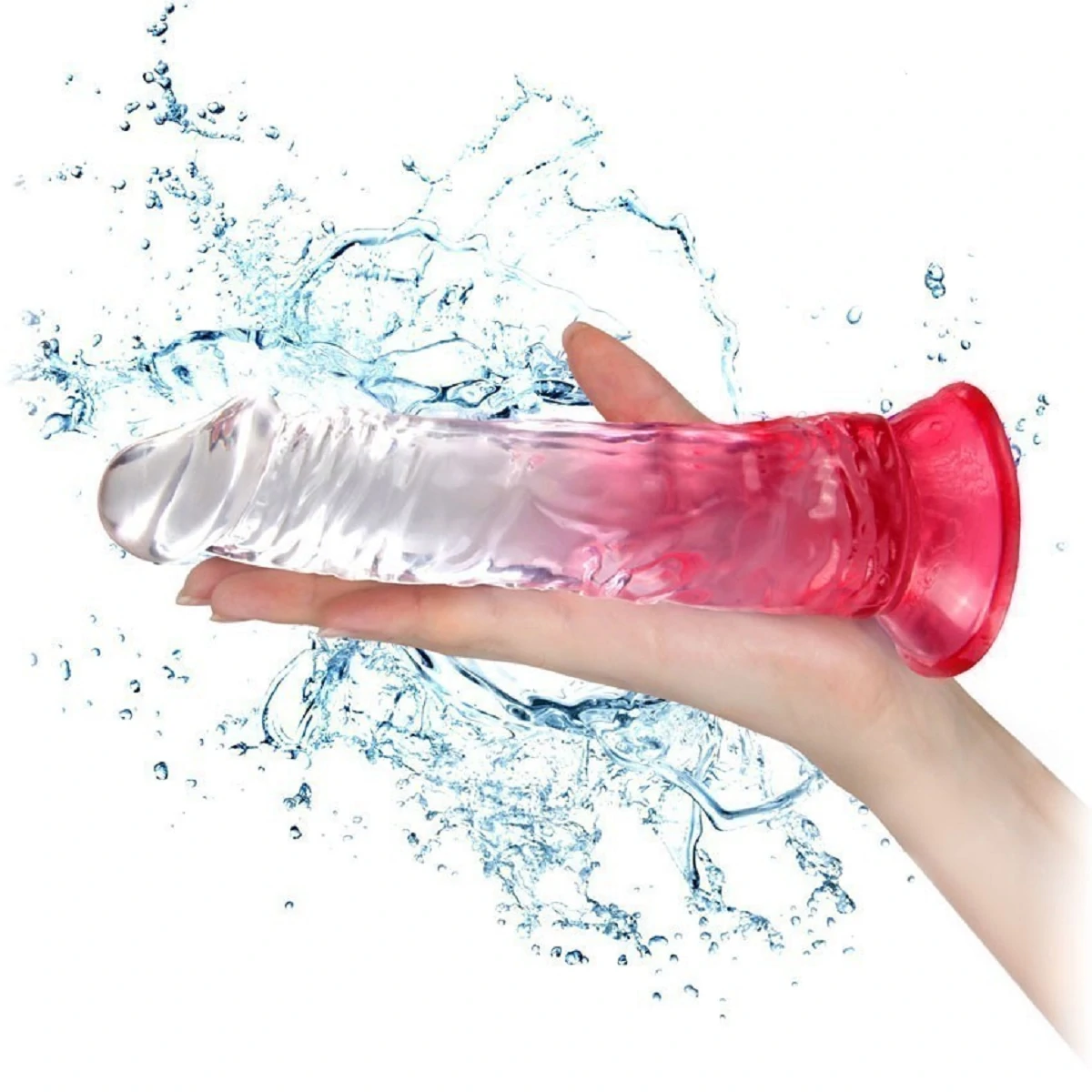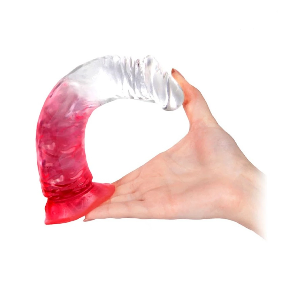 Прозрачный фаллоимитатор на присоске изготовлен из безопасного материала TPE, не содержит фталатов. Эластичный материал девайса позволяет ему слегка гнутся, так что вы без труда найдете идеальный угол для стимуляции. Игрушка имеет ярко выраженную головку и покрыта рельефными венами, что усиливает приятные ощущения дополнительным массажем стенок влагалища. Присоска в основании игрушки позволяет закрепить ее на любой плоской поверхности. Размер: длина 19 см, рабочая длина 16.5 см, диаметр 3,7 см. Цвет красный. Для более комфортного использования рекомендуем приобрести смазку на водной основе и очищающий спрей Clear Toy 100 мл для обработки изделия.