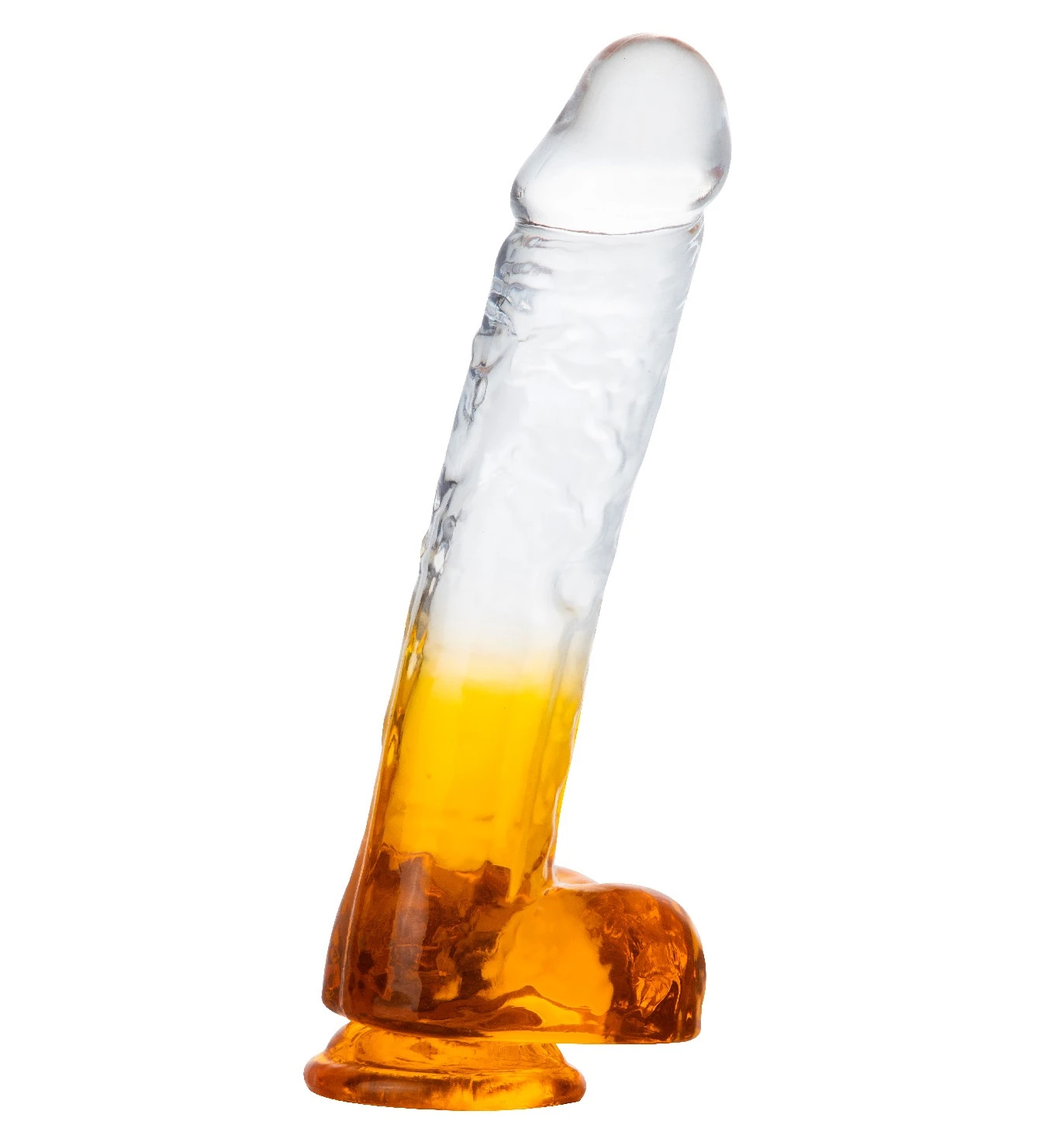 Прозрачный фаллоимитатор с мошонкой изготовлен из безопасного материала TPE, не содержит фталатов. Эластичный материал девайса позволяет ему слегка гнутся, так что вы без труда найдете идеальный угол для стимуляции. Игрушка имеет ярко выраженную головку и покрыта рельефными венами, что усиливает приятные ощущения дополнительным массажем стенок влагалища. Присоска в основании игрушки позволяет закрепить ее на любой плоской поверхности. Размер: длина 24 см, рабочая длина 19 см, диаметр 4,6 см. Цвет оранжевый. Для более комфортного использования рекомендуем приобрести смазку на водной основе и очищающий спрей Clear Toy 100 мл для обработки изделия.