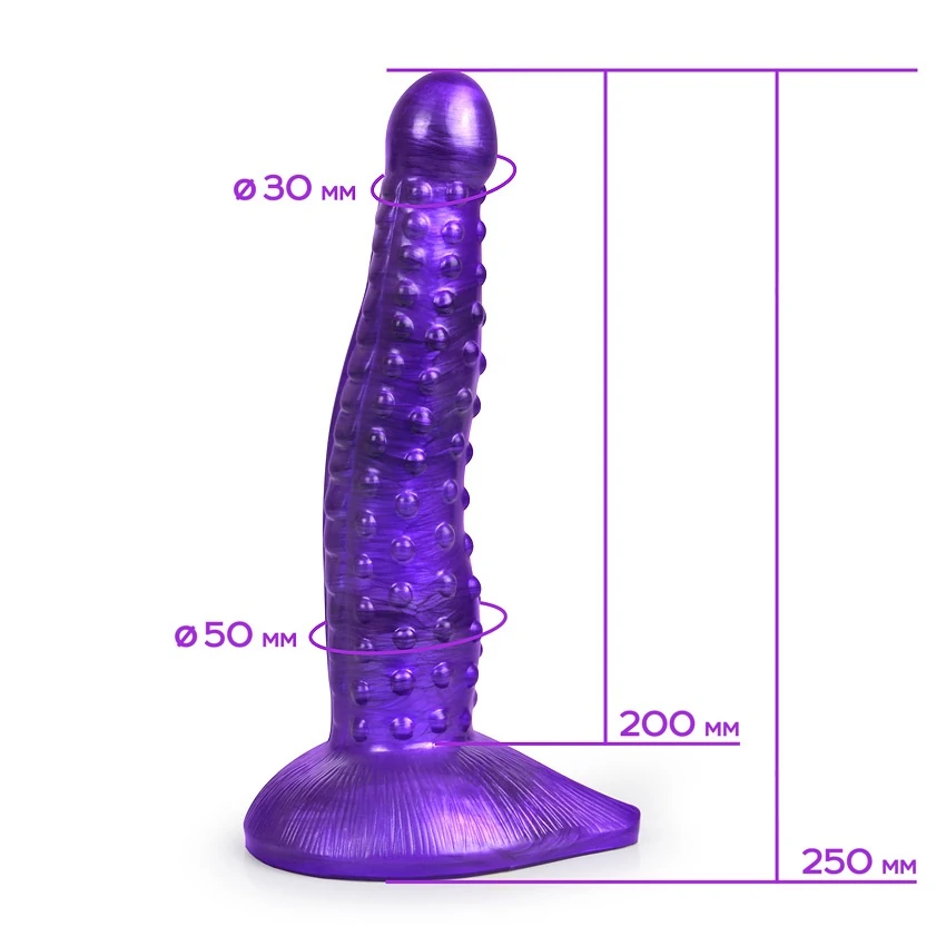 Фантастический фаллоимитатор для любителей острых эротических ощущений. Он подарит чувство заполненности и доведёт до космического уровня наслаждения. Может использоваться во время прелюдии к сексу или стать его полноценным участником. Рельефная поверхность с чешуйками и выпуклостями добавит удовольствия во время любовной игры. Широкая присоска надёжно крепит изделие к ровной горизонтальной или вертикальной поверхности. Игрушка изготовлена из упругого материала, хорошо гнётся в разные стороны, что позволяет использовать её в различных положениях. Размер: общая длина 25 см, рабочая длина 20 см, диаметр от 3 до 5 см. Цвет фиолетовый. Для более комфортного использования рекомендуем приобрести смазку на водной основе и очищающий спрей Clear Toy 100 мл для обработки изделия.