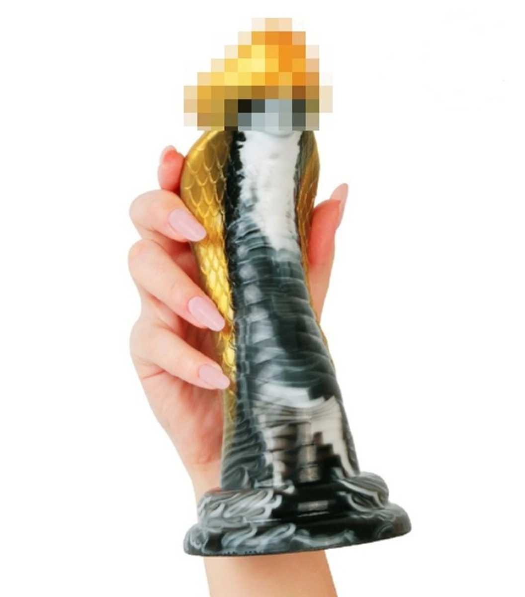 Роскошный фаллоимитатор в виде атакующей кобры создан для любителей оригинальных секс-игрушек. Объёмный ствол с большой головкой обеспечит потрясающее чувство заполненности и доведёт до пика удовольствия. Рельефная поверхность и разная толщина увеличат наслаждение. Широкая присоска надёжно удержит изделие на ровной горизонтальной или вертикальной поверхности. Интимный аксессуар может использоваться соло или в паре, усилить возбуждение во время прелюдии к сексу или стать его полноценным участником. Секс-игрушка изготовлена из упругого материала. Хорошо гнётся во все стороны, что позволяет использовать её в разных положениях. Благодаря оригинальному дизайну фаллоимитатор станет отличным подарком. Размер: общая длина 22 см, рабочая длина 19 см, диаметр 6 см. Для более комфортного использования рекомендуем приобрести смазку на водной основе и очищающий спрей Clear Toy 100 мл для обработки изделия.