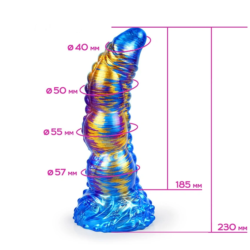 Экзотический фаллоимитатор воплотит в жизнь самые сокровенные эротические фантазии! Его необыкновенный дизайн и космическая цветовая гамма завораживают, а оригинальная изогнутая форма дарит незабываемые сексуальные ощущения. Мощный ствол даёт приятное чувство наполненности, а рельефная поверхность обеспечивает дополнительный стимулирующий эффект. Изогнутый кончик позволяет стимулировать точку G. Широкая присоска надёжно крепит изделие к ровной горизонтальной или вертикальной поверхности. Игрушка изготовлена из упругого материала, хорошо гнётся в разные стороны, что позволяет использовать её в различных положениях. Размер: общая длина 23 см, рабочая длина 18.5 см, диаметр 6 см. Для более комфортного использования рекомендуем приобрести смазку на водной основе и очищающий спрей Clear Toy 100 мл для обработки изделия.