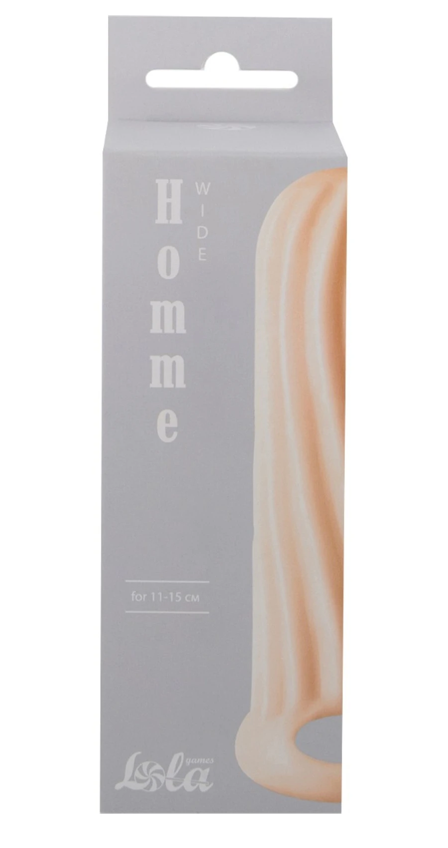 Насадка Wide коллекции Homme обеспечивает увеличение размера пениса в ширину. Материал насадки - гипоаллергенный, создающий имитацию мягкой и шелковистой кожи ТПЕ. Фиксирующее кольцо на мошонку не только удерживает фаллоудлинитель, но и благодаря сдавливанию может усиливать эрекцию. Двухсторонний нереалистичный рельеф насадки позволит одновременно стимулировать сразу обоих партнеров во время полового акта и дополнительно подарит приятные ощущения. Благодаря толстым стенкам, насадка увеличивает диаметр пениса до 1,5 см. Насадка отлично тянется, продлевает время интимной близости и компенсирует анатомическое несоответствие между партнерами Материал ТПЕ. Размер: длина 13 см, длина внутреннего тоннеля 12,5 см, внешний диаметр 3,8 см, толщина стенки 7 мм. Цвет бежевый. Для более комфортного использования рекомендуем смазку на водной основе и очищающий спрей Clear Toy 100 мл.