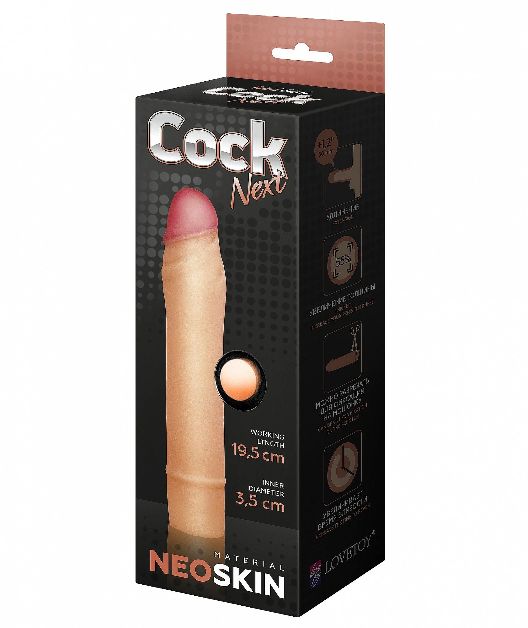 Насадка-удлинитель на пенис обеспечивает увеличение размера как в длину, так и в толщину. Сделана из полимера, создающего имитацию мягкой, шелковистой кожи с ощущениями реального фаллоса при интимном контакте. Насадка удлиняет время близости и компенсирует анатомическое несоответствие партнеров. Изделие, благодаря специально разработанной полимерной композиции для парапротезных изделий, безопасно токсикологически, не травмирует слизистые оболочки и мягкие ткани. Размер: длина 19,5 см, диаметр 3,5 см. Рекомендуем смазку на водной основе. После использования промыть теплой водой с мылом, высушить и опудрить пудрой для секс-игрушек.