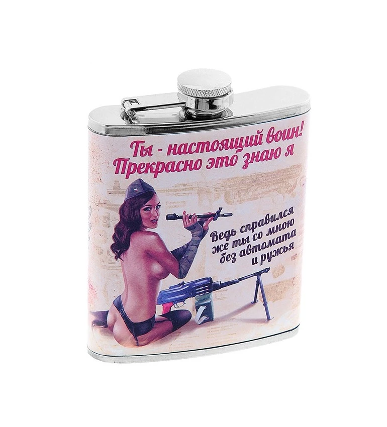 Подарите своему дорогому человеку такую эксклюзивную фляжку "Ты настоящий воин!" и он будет очень доволен! Объем 210 мл.