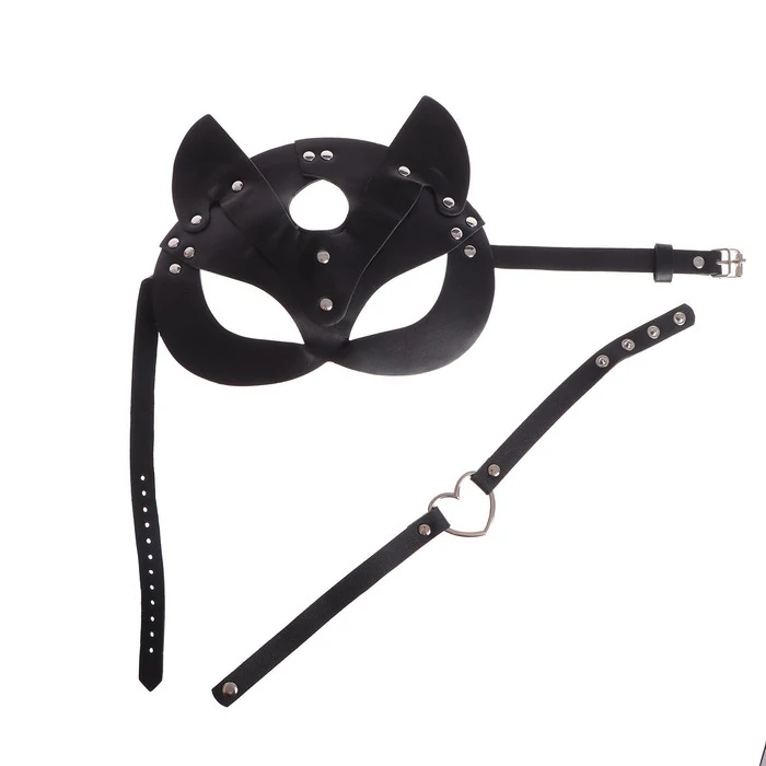 Карнавальный набор Строгая киска, маска кошки и чокер с сердечком. Длина чокера 40 см. Высота маски 19 см, ширина 22,5 см. Цвет черный.