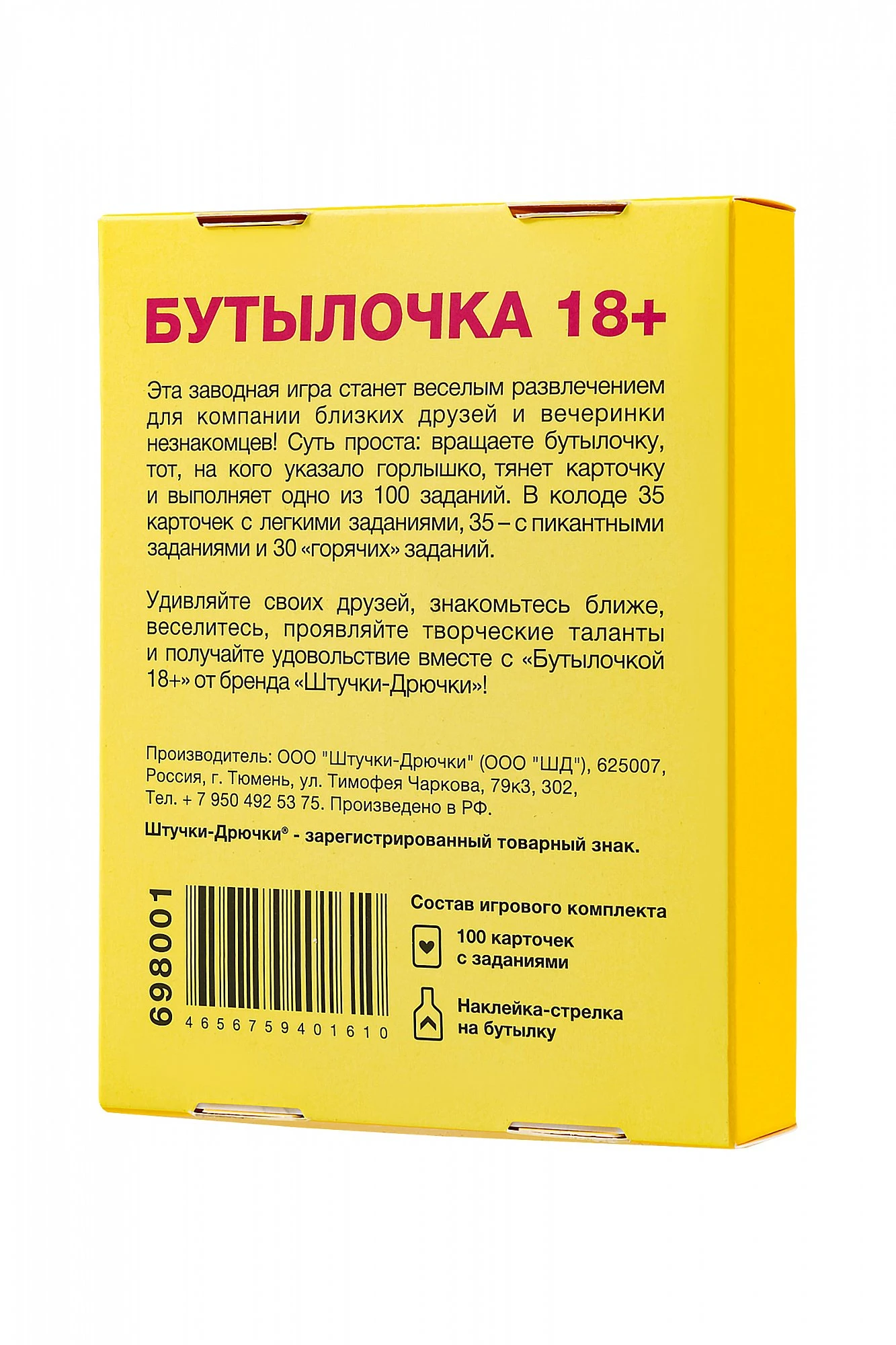 Бутылочка 18+ - горячая игра для весёлой компании! Прокачай вечеринку до максимума! Вращай бутылочку, тяни карточку и выполняй одно из 100 заданий — от милых до провокационно-откровенных.