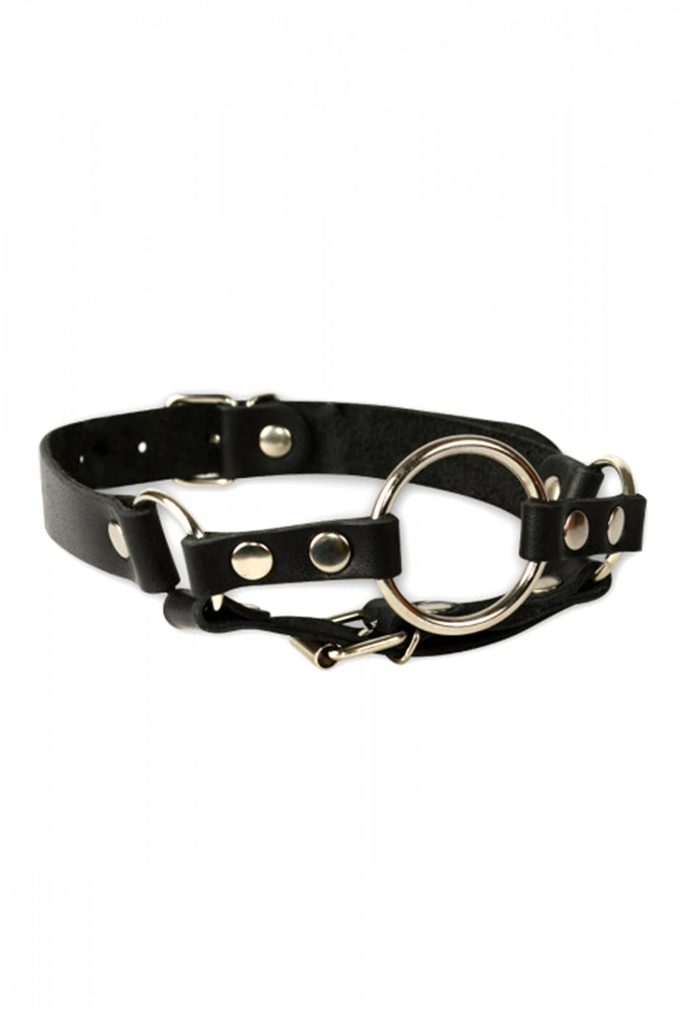 Кляп рамка Sitabella чёрный с металическити кольцом, с дополнительным поддерживающим регулируемым ремешком под подбородок. Ремешки из натуральной кожи черного цвета, фурнитура хромированая. Размер: длина 57 см. Цвет черный.