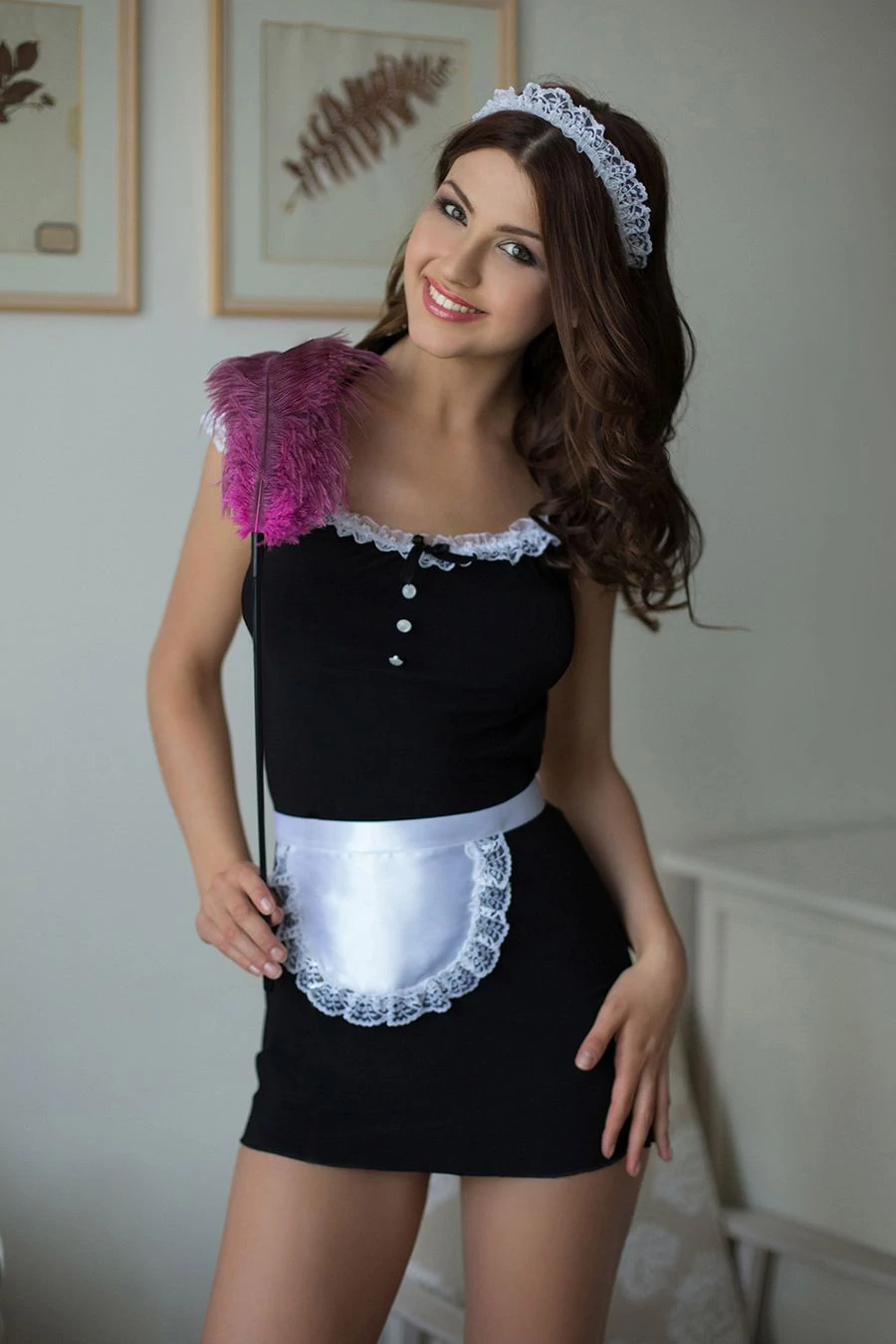 Эротический костюм горничной из 3-х предметов черный S/M.Эротический костюм состоит из непрозрачного короткого платья с открытой спиной, белого передника и головного убора.