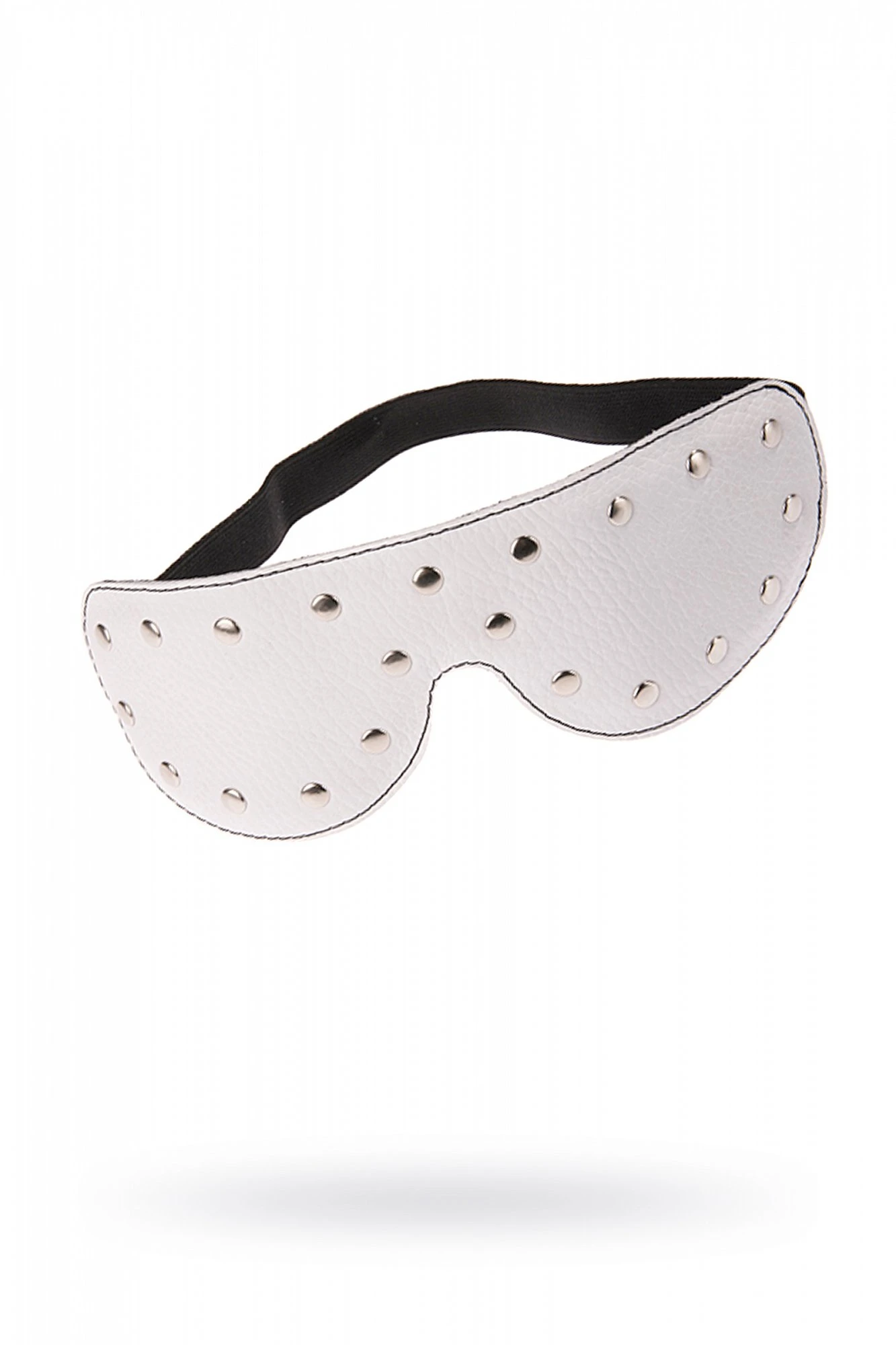 Маска изготовлена из натуральной кожи с велюровой подкладой. Украшена хромированными заклёпками. Размер универсальный.