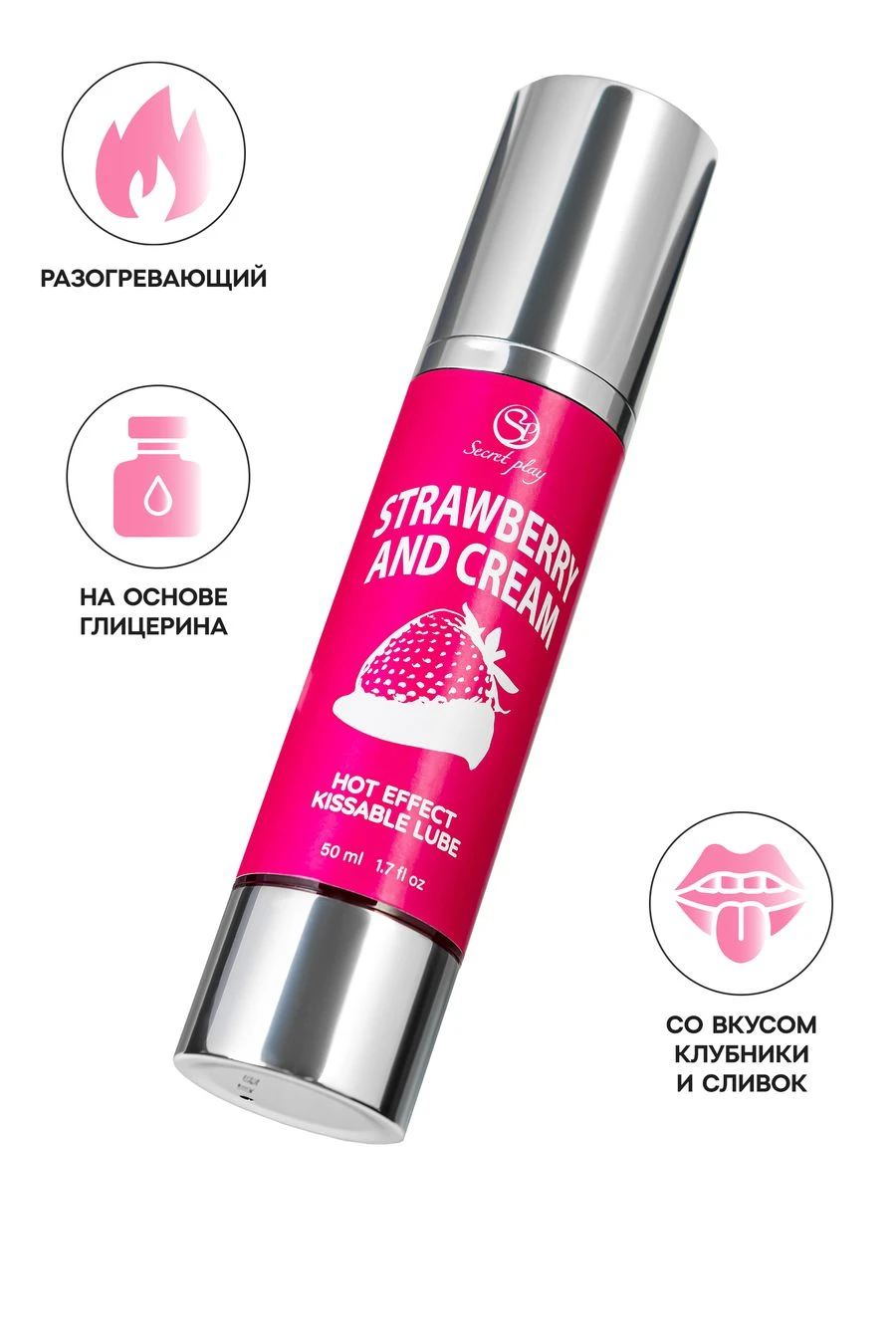 Strawberry Cream Hot Effect массажное масло 2 в 1 от Secret Play, которое добавит сладости и страсти вашим интимным моментам. Его согревающий эффект и нежный вкус клубники со сливками превращают прикосновения в настоящую чувственную симфонию, даря яркие и насыщенные ощущения. Это универсальное масло идеально подходит для прелюдий, оральных ласк и чувственного массажа, делая каждый момент незабываемо сладким и насыщенным. Попробуйте нанести его на шею, плечи или соски и наслаждайтесь мягкими, скользящими движениями, которые плавно переходят в приятное тепло, усиливающее возбуждение и пробуждающее чувственность. Сладкий, сливочный аромат клубники наполняет воздух и создает атмосферу безмятежного наслаждения, готовя вас к дальнейшим ласкам. Strawberry Cream Hot Effect это больше, чем просто массажное масло, это универсальное средство для создания близости и романтики. Объем: 50мл.