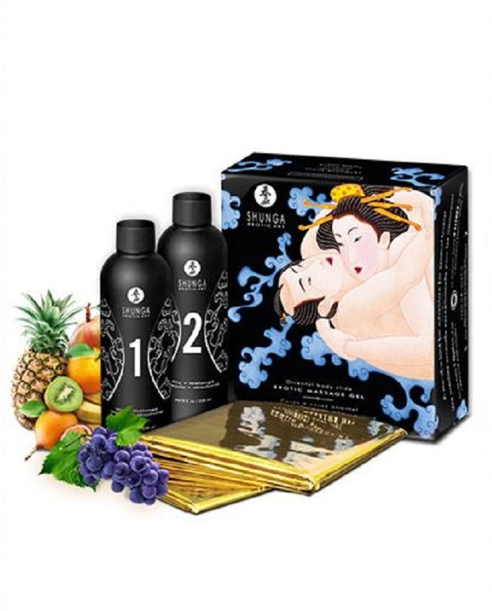 Самый пикантный эротический массаж — массаж телом по телу. И научиться делать его считается настоящим искусством. Ведь тела должны практически парить, скользить в полной невесомости, а не просто теряться друг о друга. Как сделать такой массаж? С помощью массажного геля Shunga Восточная схватка! Что такое массажный гель Shunga Восточная схватка? Это пьянящий аромат, возбуждающий эффект и нежные касания, которые превращаются с помощью геля в изысканные ласки. В комплект входит золотое воздухонепроницаемое покрывало, позволяющее сберечь от горячего эротического массажа любимые простыни.