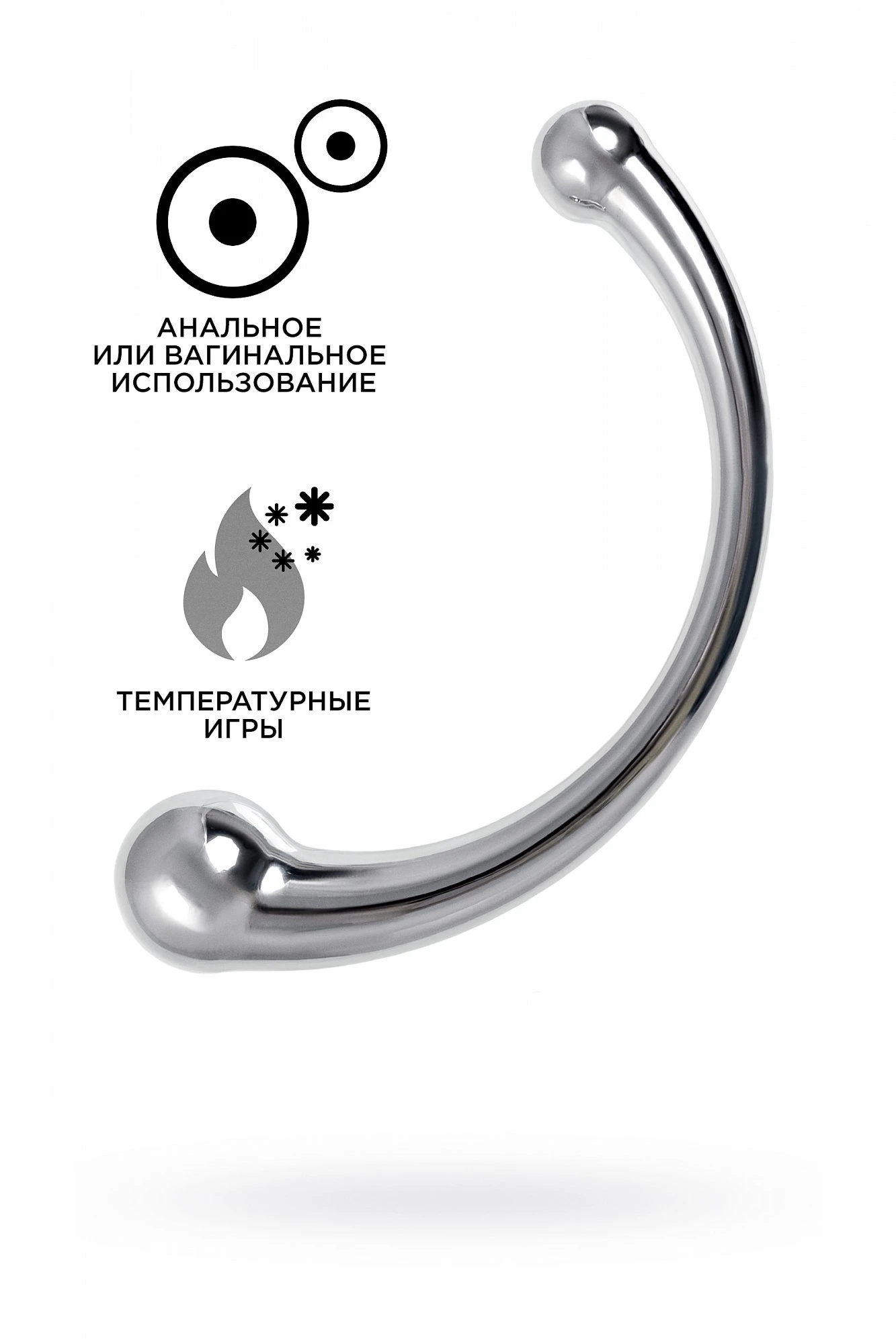 Металлический фаллоимитатор изогнутой формы с ярко выраженной головкой с обоих концов позволит испытать новые ощущения от чувственных экспериментов. Металл – один из самых безопасных и экологичных материалов, он прост в уходе, дружит со всеми видами смазок, а кроме того отлично поддается играм с температурами: для получения новых ощущений нагревайте или охлаждайте фаллоимитатор. Гладкость металла и плавность форм делают проникновение максимально комфортным. Приятная тяжесть добавит изюминку в сексуальную игру, что позволит получить еще больше наслаждения. Благодаря С-образной форме и внушительной головке отлично стимулирует зону G. Для более комфортного использования рекомендуем приобрести смазку на водной основе и очищающий спрей Clear Toy 100 мл для обработки изделия.