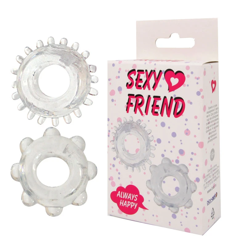 Набор эрекционных колец из серии "Sexy friend" - настоящий хит продаж и один из самых популярных интимных аксессуаров для мужчин. Кольцо "дарит" максимальную эрекцию и долгий половой акт своему обладателю. Специальные пупырышки дополнительно стимулируют клитор партнерши, доставляя ей незабываемое удовольствие. Внешний диаметр 3 см. Хорошо тянется! Для более комфортного использования рекомендуем приобрести специальный лубрикант. До и после каждого применения необходимо использовать очищающее средство для изделий интимного назначения.