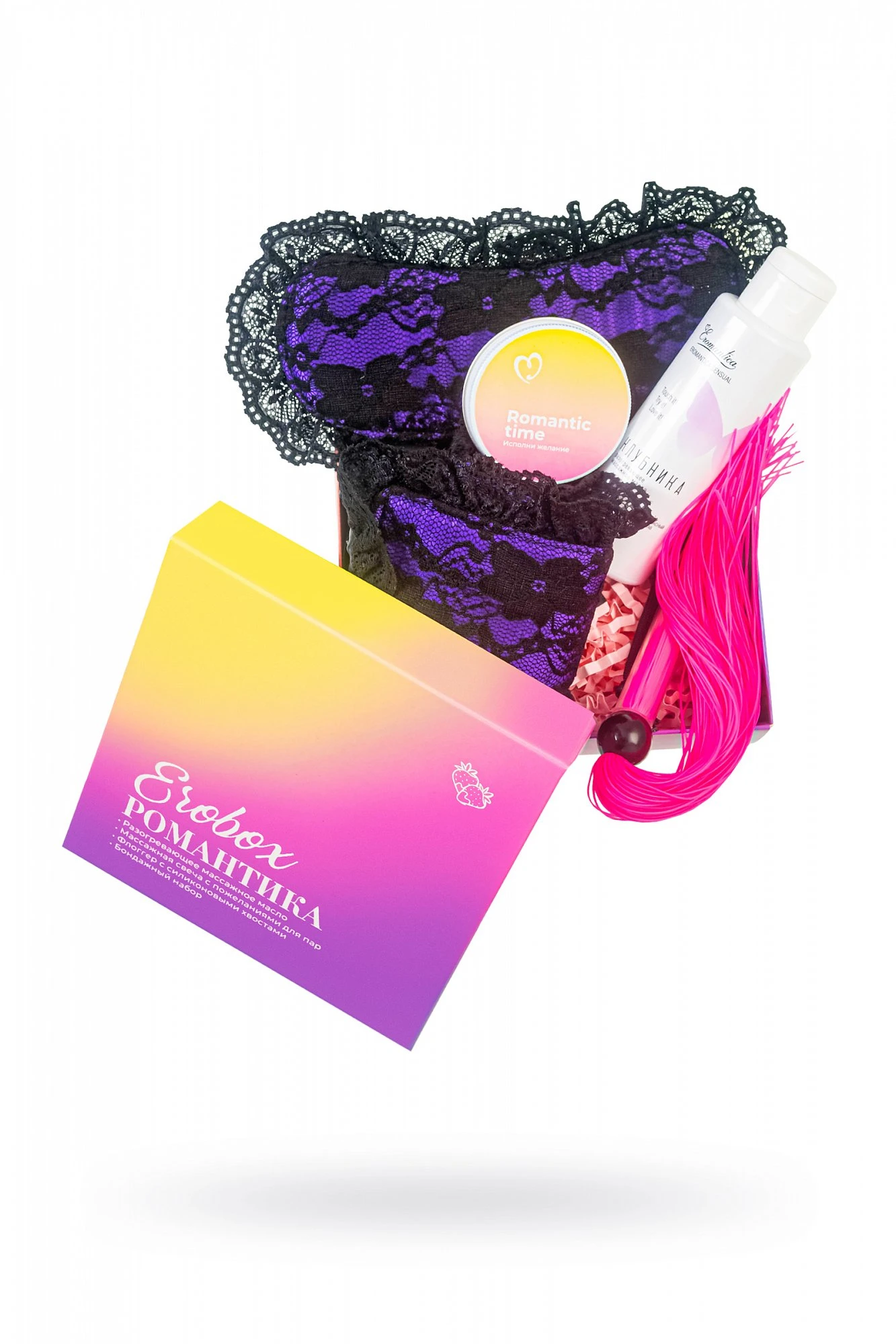 ЭРОбокс Романтика - это способ сообщить друг другу о ценности отношений и подчеркнуть особенную важность партнера в привычных буднях! Зажгите массажную свечу Romantic Time и через несколько минут узнайте, какое послание в вашу жизнь отправила Вселенная. 30 различных идей для пар на дне баночки подскажут, как порадовать друг друга в обычном дне. Пока аромат свечи наполняет пространство, повяжи мягкие аксессуары бондажного набора на глаза и руки и создай пленяющий образ для пылкого вечера. Соблазнительное кружево маски и наручников в сочетании с глубоким фиолетовым цветом стильно смотрится на теле и рождает чувственные фантазийные сценарии для двоих. Налейте несколько капель масла со вкусом клубники на эрогенные зоны друг друга, нежными движениями распределите по поверхности кожи и ощутите приятный согревающий эффект поцелуев от оральных ласк. Используйте флоггер с силиконовыми хвостами для любовных игр и добавьте приятных ощущений в интимные ласки.