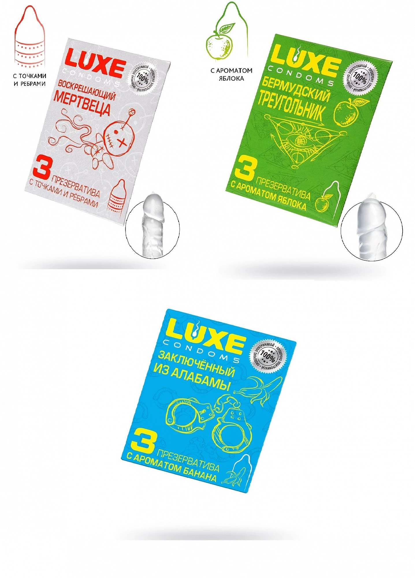 Сет гладких, текстурированных и ребристых презервативов в смазке. В наборе 3 вида по 3 шт. Общее количество презервативов 9 шт.
