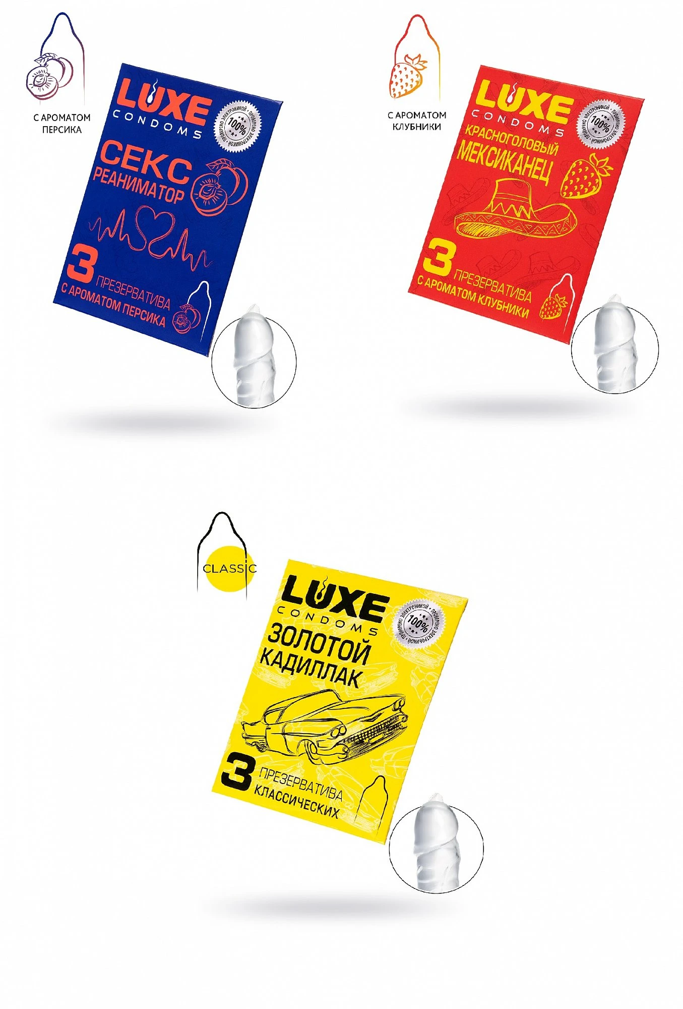 Сет гладких, текстурированных и ребристых презервативов в смазке. В наборе 3 вида по 3 шт. Общее количество презервативов 9 шт.