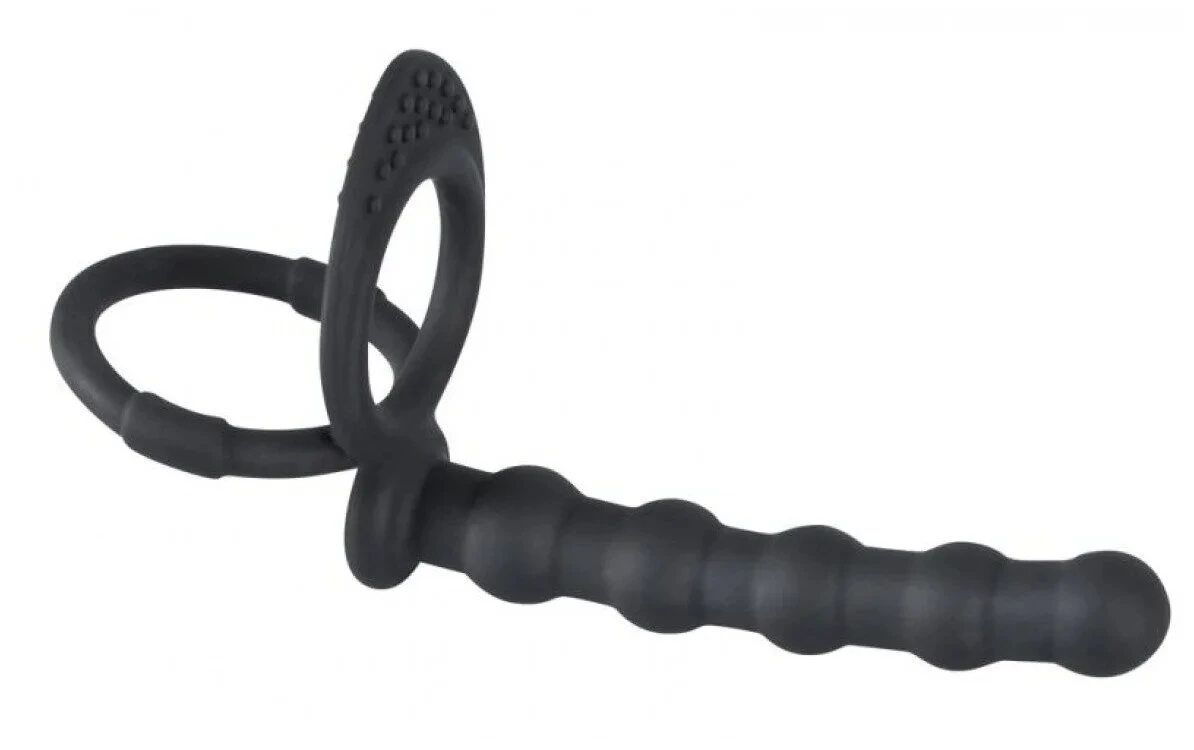 Насадка на пенис, которая позволит насладиться двойным проникновением не привлекая еще одного партнера. Она имеет форму пяти анальных бусин. Насадка оснащена двойной системой поддержки, что способствует усилению эрекции и предотвращению преждевременной эякуляции. Гибкие и эластичные петли обеспечивают надежную фиксацию. Просто разместите одну петлю на основании возбужденного пениса, а вторую оденьте на мошонку.Насадка изготовлена из мягкой, гладкой на ощупь и не содержащей фталаты термопластичной резины. Размер: длина 13,5 см, диаметр 2 см. Цвет: черный. Для более комфортного использования рекомендуем приобрести смазку на водной основе и очищающий спрей Clear Toy 100 мл для обработки изделия.