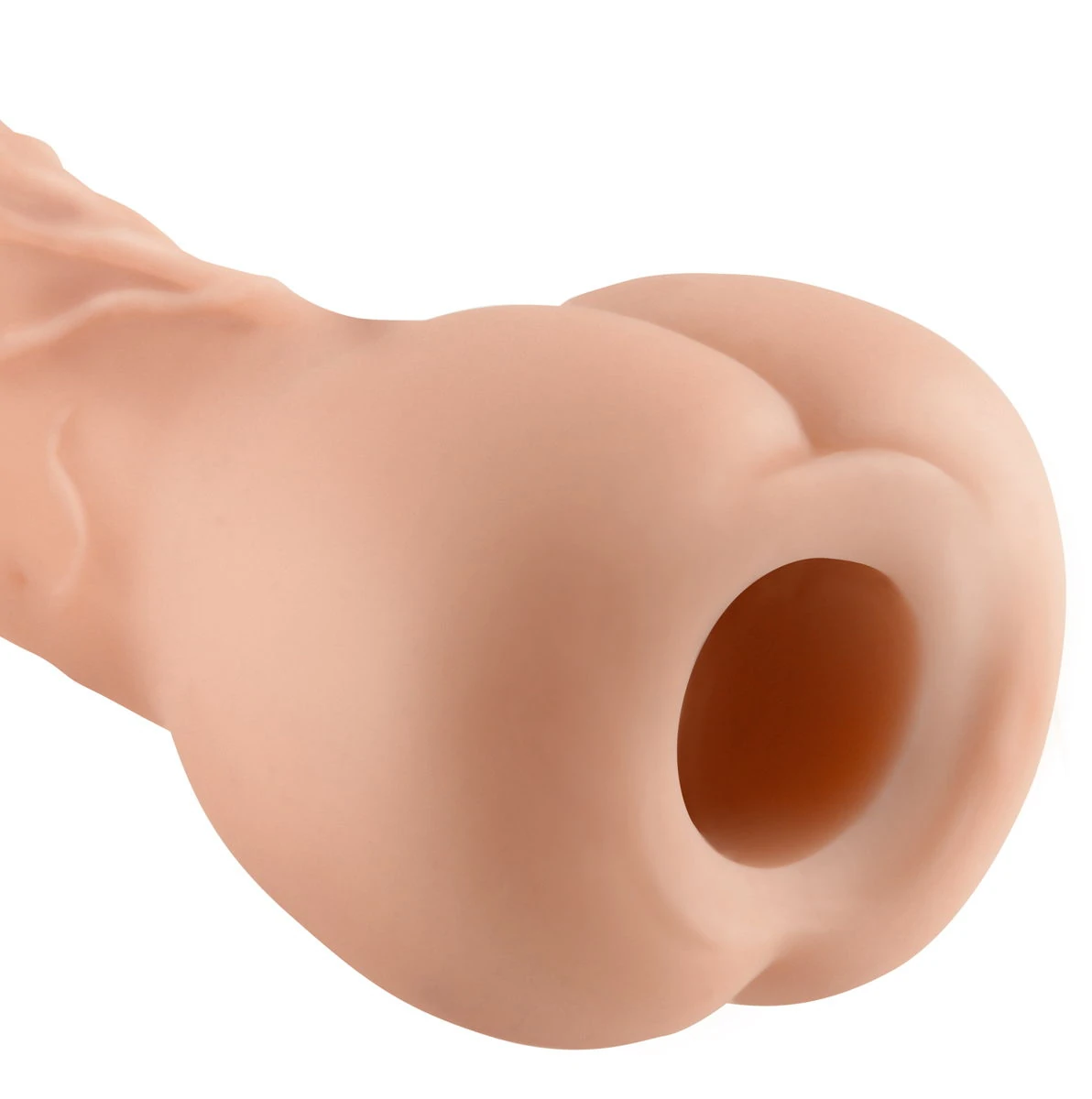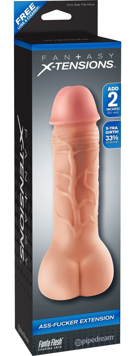 Реалистичная многоцелевая насадка в форме члена и в форме попы у основания. Создаются острые ощущения от секса «втроем» (контакт с двумя любовными отверстиями сразу). Насадка может быть использована в качестве персонального мастурбатора в соло-играх, благодаря созданию естественной всасывающей реакции с каждым ударом. Изготовлена из супер-эластичного Fanta Flesh материала. Материал не содержит фталатов. Подходит для большинства размеров. Увеличивает диаметр (даёт в среднем 33% увеличения в диаметре от исходных параметров) и увеличивает длину на 5,1 см. Внутренний диаметр -3 см. В комплект включены: любрикант, очиститель для игрушек.