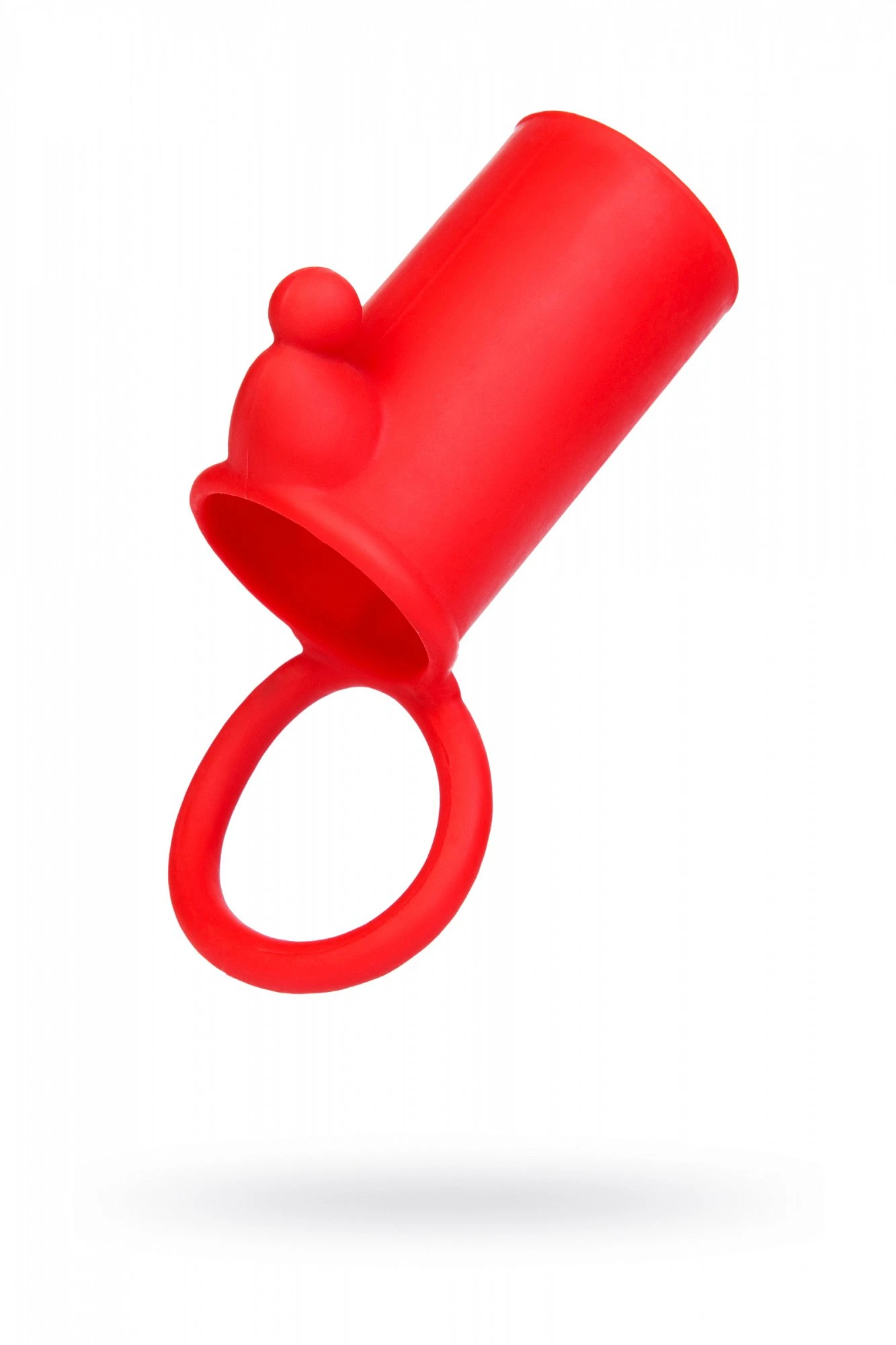 Силиконовая насадка. С кольцом для крепления и клиторальной стимуляцией. С орнаментом. Цвет: красный