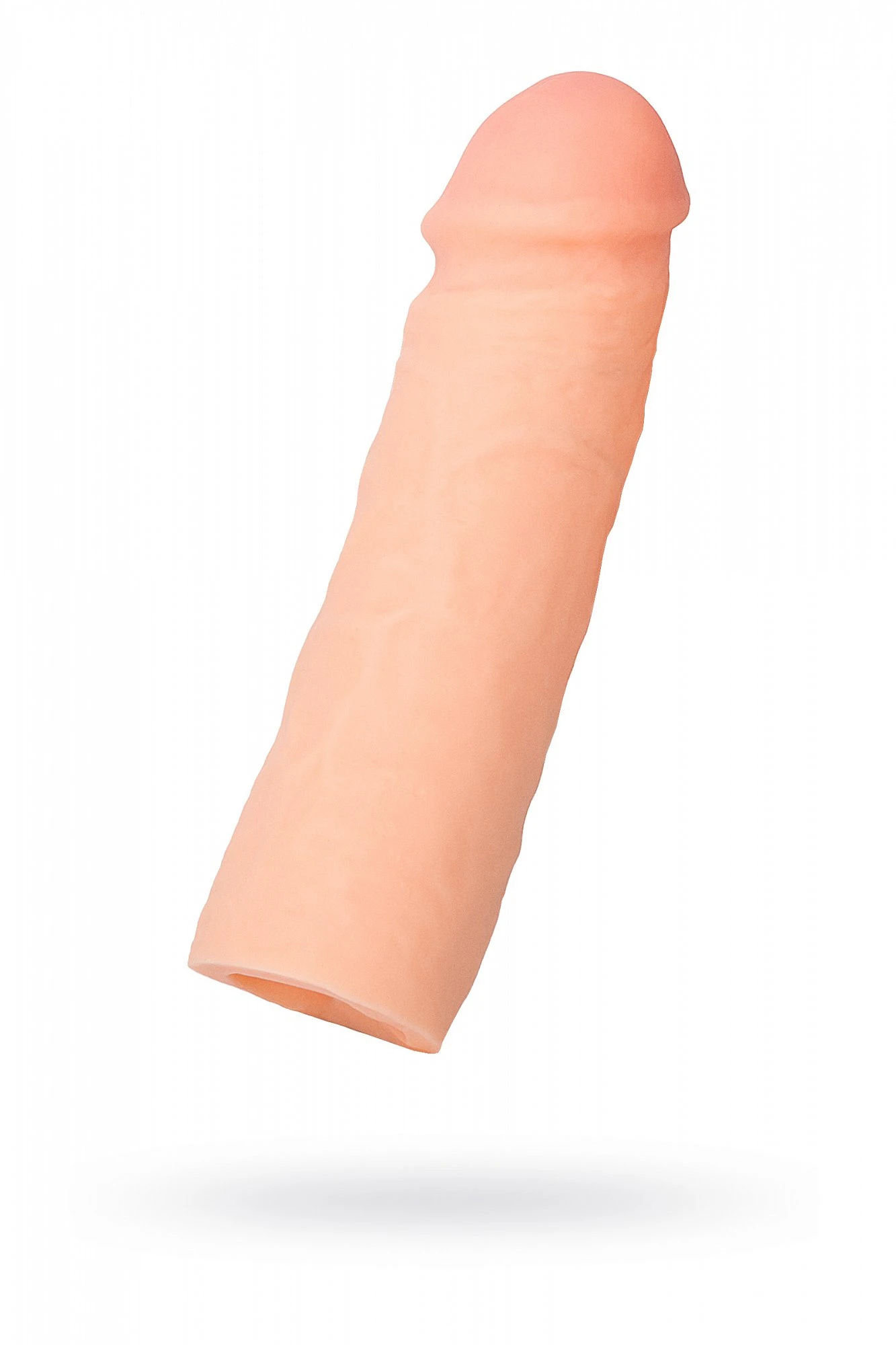 Насадка с четко очерченной головкой выполнена из реалистичного материала Softskin. Благодаря своей эластичности легко одевается на член, увеличивая его в длине и в диаметре, продлевая удовольствие. Может использоваться в качестве насадки на вибратор. Размер: длина: 18 см, диаметр: 4,5 см, толщина стенки 0,6 см (максимальное утолщение в ширину 1,2см) В комплекте прилагается лубрикант Sexus Toy 20 мл.
