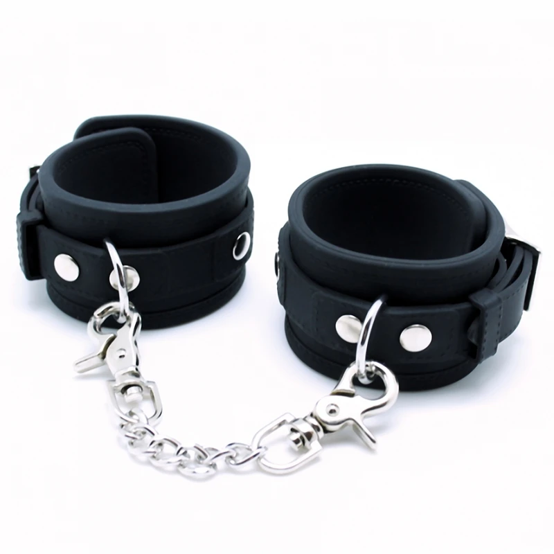 Созданы для тех кто в теме.Новинку из бархатного силикона врятли вы оставите на полке без дела.Оковы изготовлены из высококачественного силикона. Соединяются между собой короткой цепью с двумя карабинами на концах. Не нарушают кровообращение, надёжно фиксируются на щиколотках с помощью ремешков. Размер: длина 32 см, ширина 5,6 см. Цвет: черный.