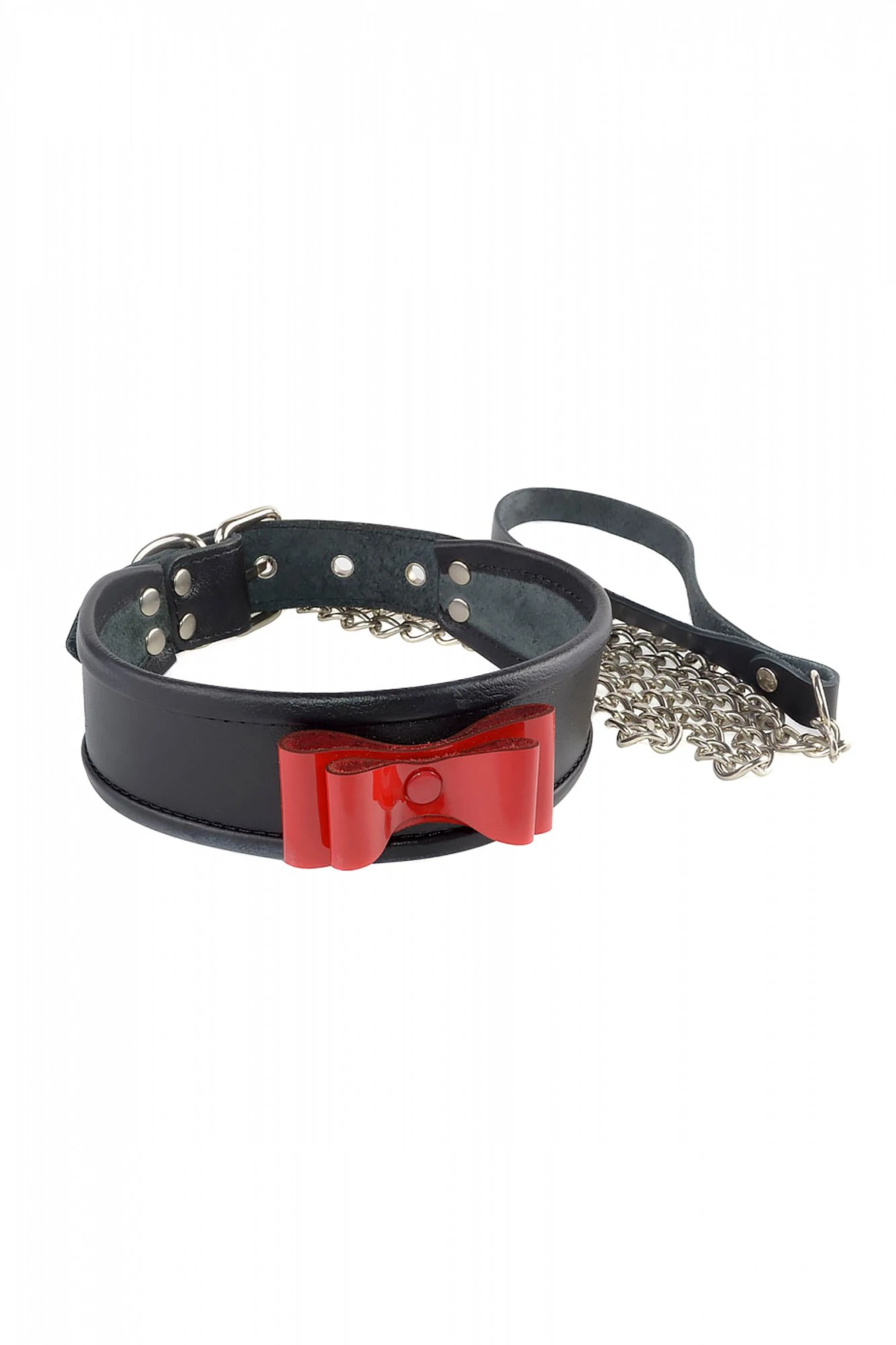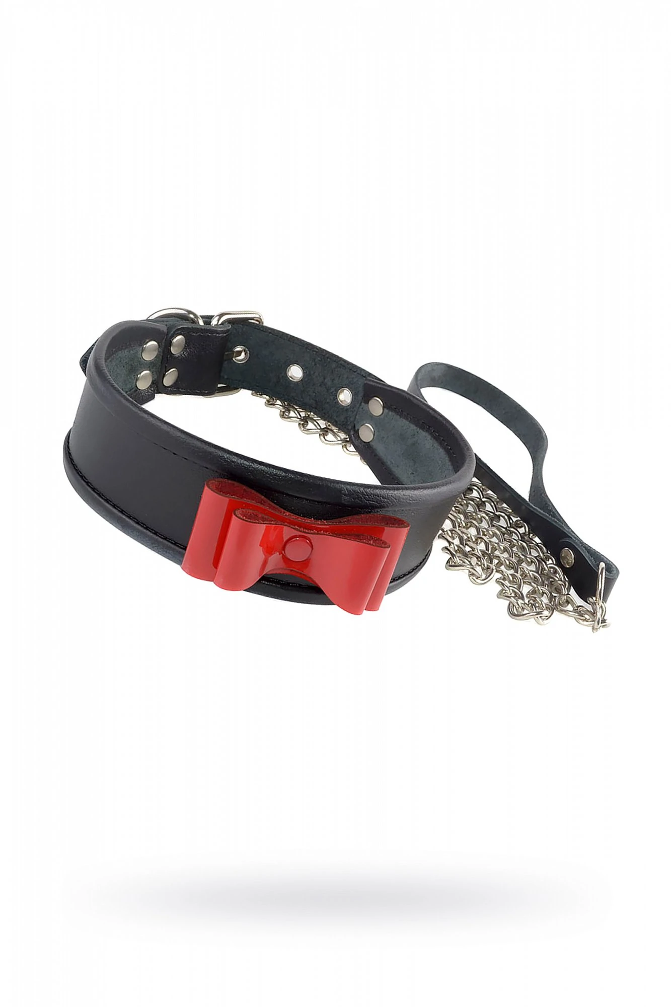 Ошейник BDSM на ряду со своей функциональностью, является также фетишным предметом, который несет психоэмоциональную нагрузку и распределяет роли внутри пары. Одевая его на другого, Вы ощущаете власть и ответственность за него, а позволив одеть на себя ошейник, чувствуете принадлежность к партнеру и подавление собственной воли. Так как в обычной жизни повод для ношения ошейника навряд ли случится, не стоит пренебрегать им в ролевых играх, ведь это и украшение, делающее Ваше тело сексуальнее, притягательнее и предмет управления секс-партнёром. Ошейник из натуральной кожи от Sitabella подойдет, как для нетрадиционных сессий BDSM, так и для романтичных «ванильных игр». Ошейник изготовлен из высококачественной кожи черного цвета. По краю ошейника проходит оторочка, что обеспечивает комфортное использование при ношении девайса. Кокетливость и яркость лаконичному изделию придаёт объемный бантик из лаковой кожи красного цвета. Отрегулировать размер ошейника можно при помощи металлической пряжки.