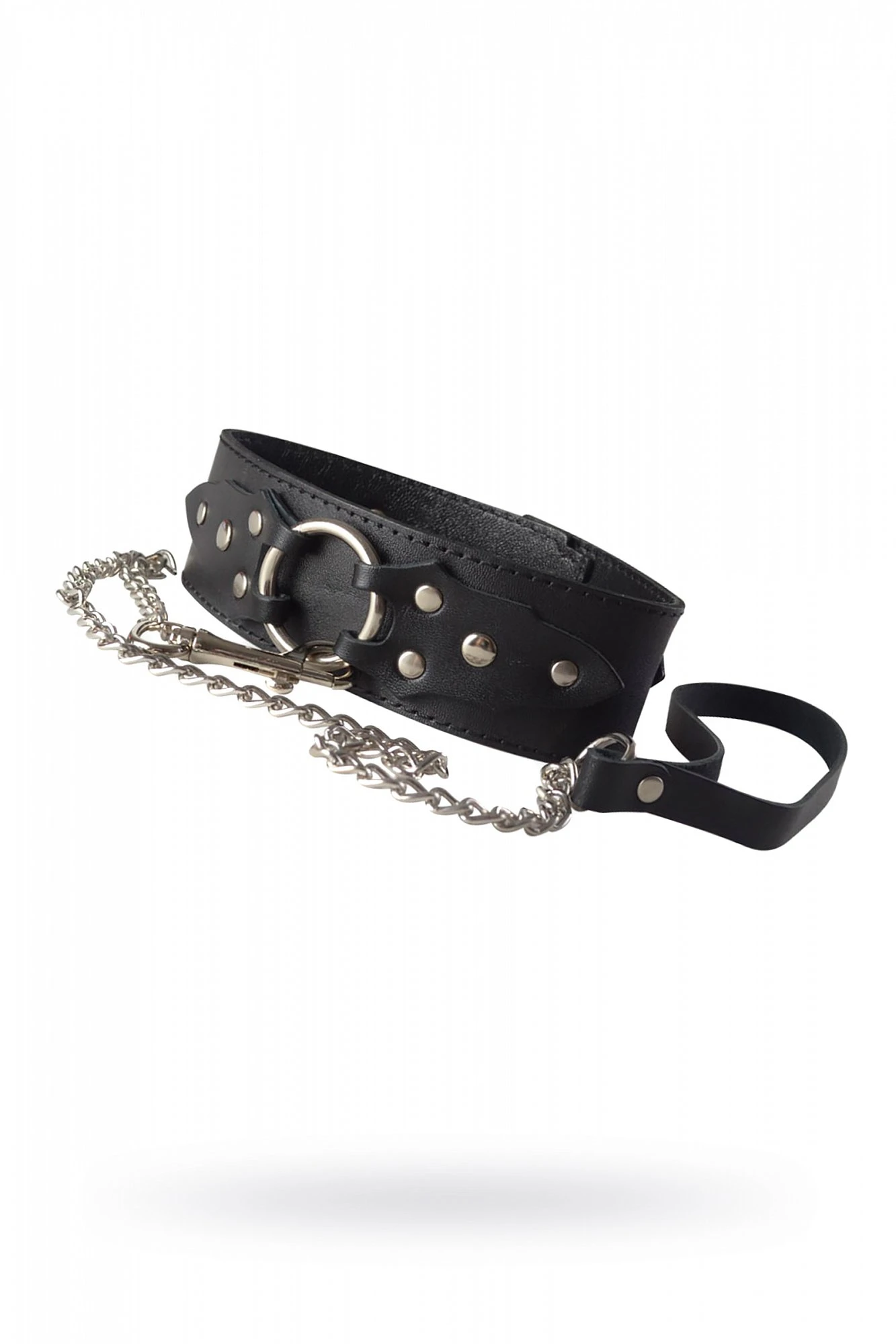 Кожаный ошейник в готическом стиле от Sitabella – это строгий и лаконичный аксессуар BDSM, способный вызвать эмоционально-сексуальное возбуждение, лишь своим нахождением на теле секс-партнёра. Чёрный ошейник из толстой натуральной кожи, ширина которого составляет 4,8 см, имеет внутреннюю подкладу из тонкой кожи. Так как ошейник достаточно широкий, хорошо просматривается текстура натуральной кожи, в виде мелкой паутинки. Декоративным элементом данного аксессуара, является металлическое кольцо, удерживаемое двумя кожаными узорчатыми накладка, оно также используется для присоединения поводка-цепочки к ошейнику. Длина поводка-цепочки 85 см. Размер изделия регулируется металлической пряжкой.Размер: общая длина ошейника 42 см, ширина 4,8 см. Цвет черный.