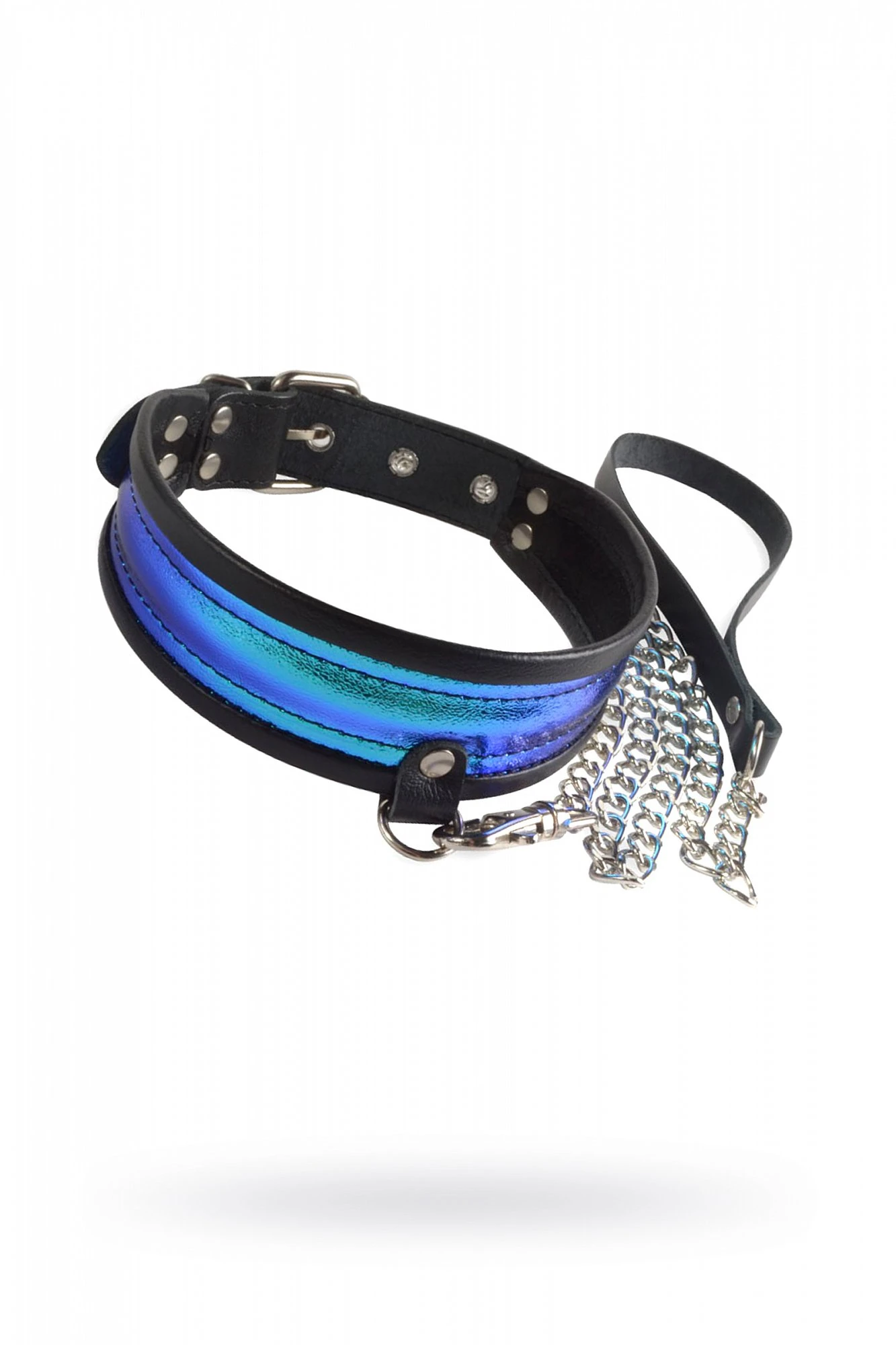 Фантастически яркий, эффектный и безумно сексуальный ошейник от Ситабелла привнесет в Ваши эротические отношения фейерверк незабываемых ощущений. Натуральная черная кожа, из которой изготовлен ошейник, декорирована голографической вставкой, преобладающим цветом которой, является синий. При различном освещении и смене декораций будет меняться цвет ошейника, отражая пространство, могут появится такие цвета как, бирюзовый, фиолетовы, изумрудный. Эта завораживающая смена цветов отразится страстным влечением партнёра и незабываемыми ощущениями. Легко зафиксировать девайс на шее и отрегулировать размер можно при помощи пряжки. Торцы ошейника отделаны оторочкой, что придает краю скругленный вид. Для управления секс-партнёром к ошейнику, при помощи карабина, крепится поводок-цепочка около 1 м. Для удобного использования, на поводке имеется кожаный ремешок-петля для запястья. Размер: ширина ошейника 3,8 см, длина 42 см.