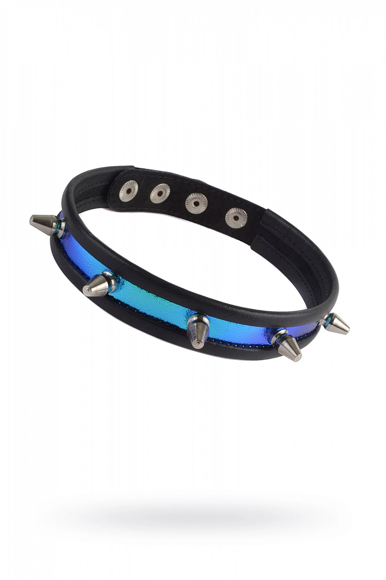 Стильный и броский ошейник из черной кожи от Ситабелла акцентирует внимание на Вашей шее, делая её ещё изящнее и привлекательнее для партнёра. Голографическая отделка ошейника придаёт ему необычный и эффектный вид, что непременно отразится на Вашем образе, сделав его ещё более страстным и сексуальным. Пять небольших 12 мм шипов придают девайсу агрессии и дерзости. Ошейник изготовлен из высококачественной натуральной кожи чёрного цвета. Для комфортного ношения края изделия обработаны оторочкой, что придаёт им округлую форму. Закрепить на шее и отрегулировать размер девайса можно при помощи кнопок. Вся металлическая фурнитура имеет никелевое покрытие. Размер: общая длина ошейника 40 см, ширина 2 см.