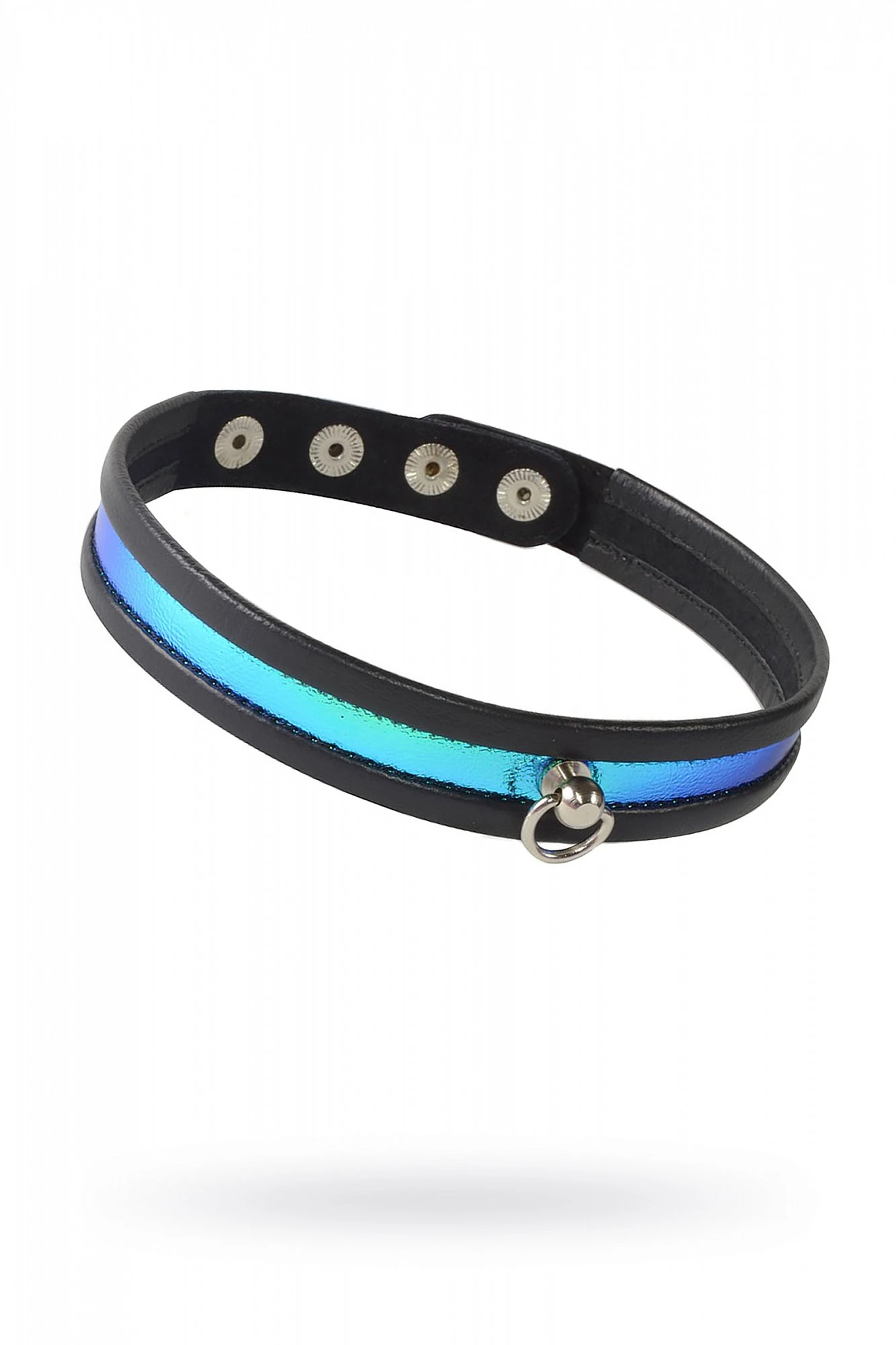 Узкий ошейник чокер от Ситабелла – это яркий и стильный аксессуар ролевых игр, который обязательно украсит Вашу шею, сделав образ более эротичным и вожделенным. Ошейник – это атрибут подчинения, поэтому одев его, отдаётесь во власть партнёра, который будет нести ответственность за Вашу безопасность и удовольствие. Основа ошейника изготовлена из натуральной чёрной кожи. Необычности ошейнику придаёт голографическая отделка, основными цветами которой являются, синий, изумрудный, бирюзовый, переливы которых образуют богатый колорит с промежуточными оттенками. Комфортное ношение обеспечивают округлые края изделия, обработанные оторочкой. Зафиксировать ошейник и отрегулировать размер можно при помощи кнопок. Вся металлическая фурнитура имеет никелевое покрытие.Размер: общая длина 41 см, ширина ремешков 2 см.