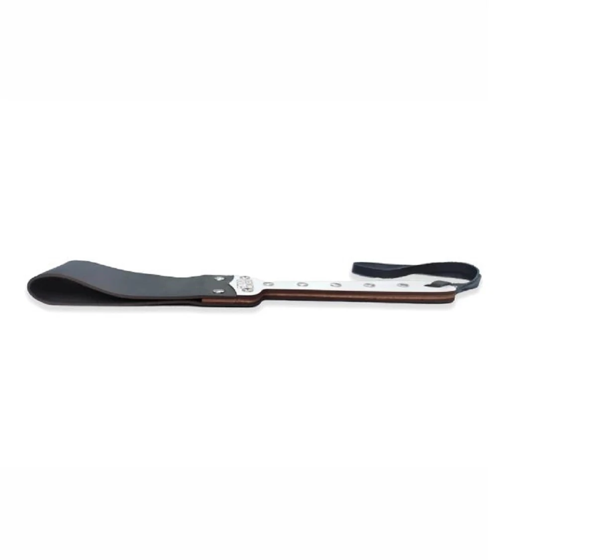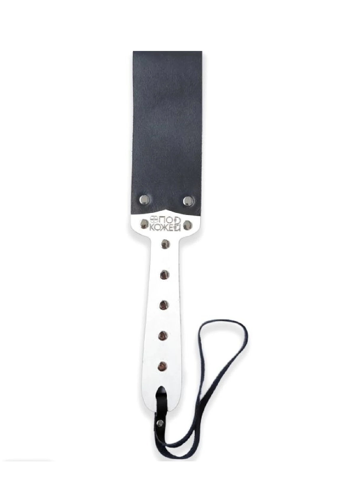 Паддл черный мягкий из натуральной кожи, дерева и HDF-покрытия белого цвета. Этот аксессуар является изысканной частью ролевых игр и БДСМ-игр, позволяющих углубиться в мир интриги и наслаждения. Паддл для БДСМ это качественный и стильный аксессуар, придающий игре дополнительную эротическую пикантность и возможность наслаждаться прекрасными моментами страсти и подчинения. Размер: общая длина 34 см, длина ударной части 16 см, ширина ударной части 6,5 см. Цвет: черный с белым.