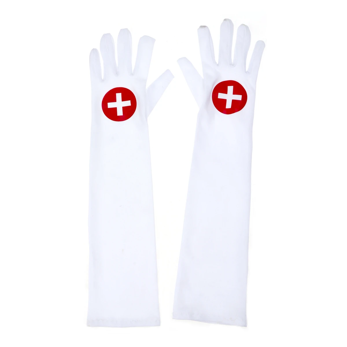 Белые длинные перчатки с крестом под костюм медсестры. Материал: 92% нейлон, 8% эластан. Длина общая 42 см. Размер: универсальный. Цвет: белый.