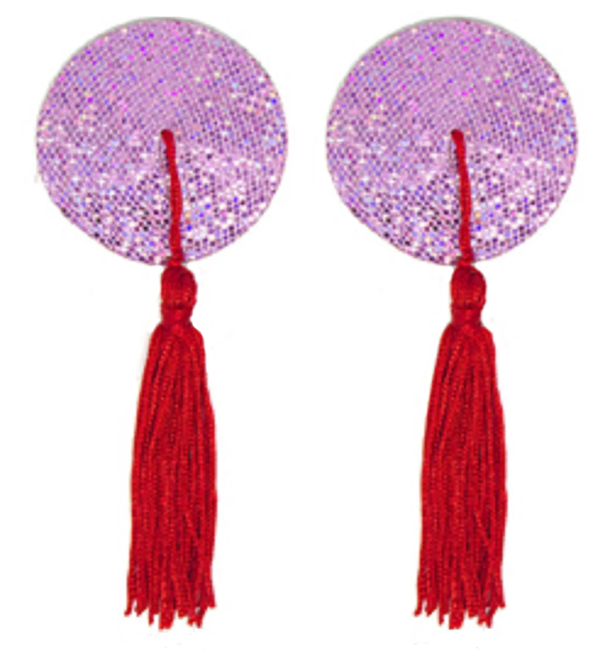 Круглые плотные наклейки на соски с мягкими кисточками. Наклейки многоразовые, с внутренней стороны пропитаны силиконовым гелем. Размер: диаметр 6 см.