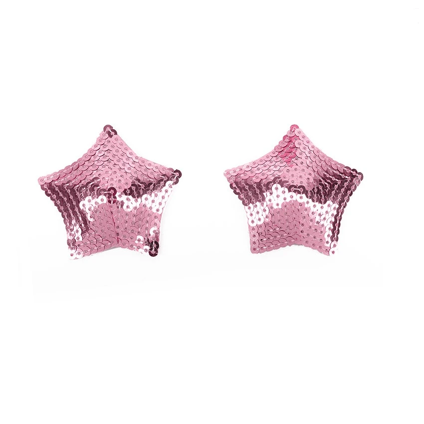 Добавить изюминку в любовную игру помогут оригинальные пэстисы в виде звёздочек. Они украсят соски, сделав грудь привлекательной и манящей. Внешняя сторона изделий отделана пайетками. На внутренней имеется специальный силиконовый слой, за счёт которого аксессуары держаться на сосках.
