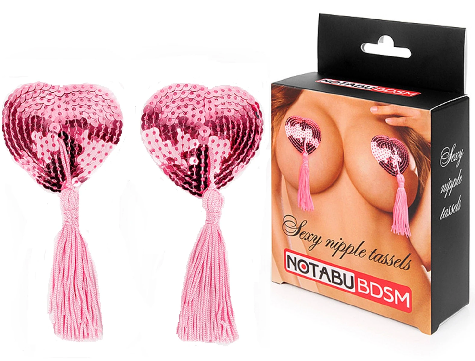 Добавить изюминку в любовную игру помогут оригинальные пэстисы с игривыми кисточками. Они украсят соски, сделав грудь привлекательной и манящей. Внешняя сторона изделий отделана пайетками. На внутренней имеется специальный силиконовый слой, за счёт которого аксессуары держаться на сосках.