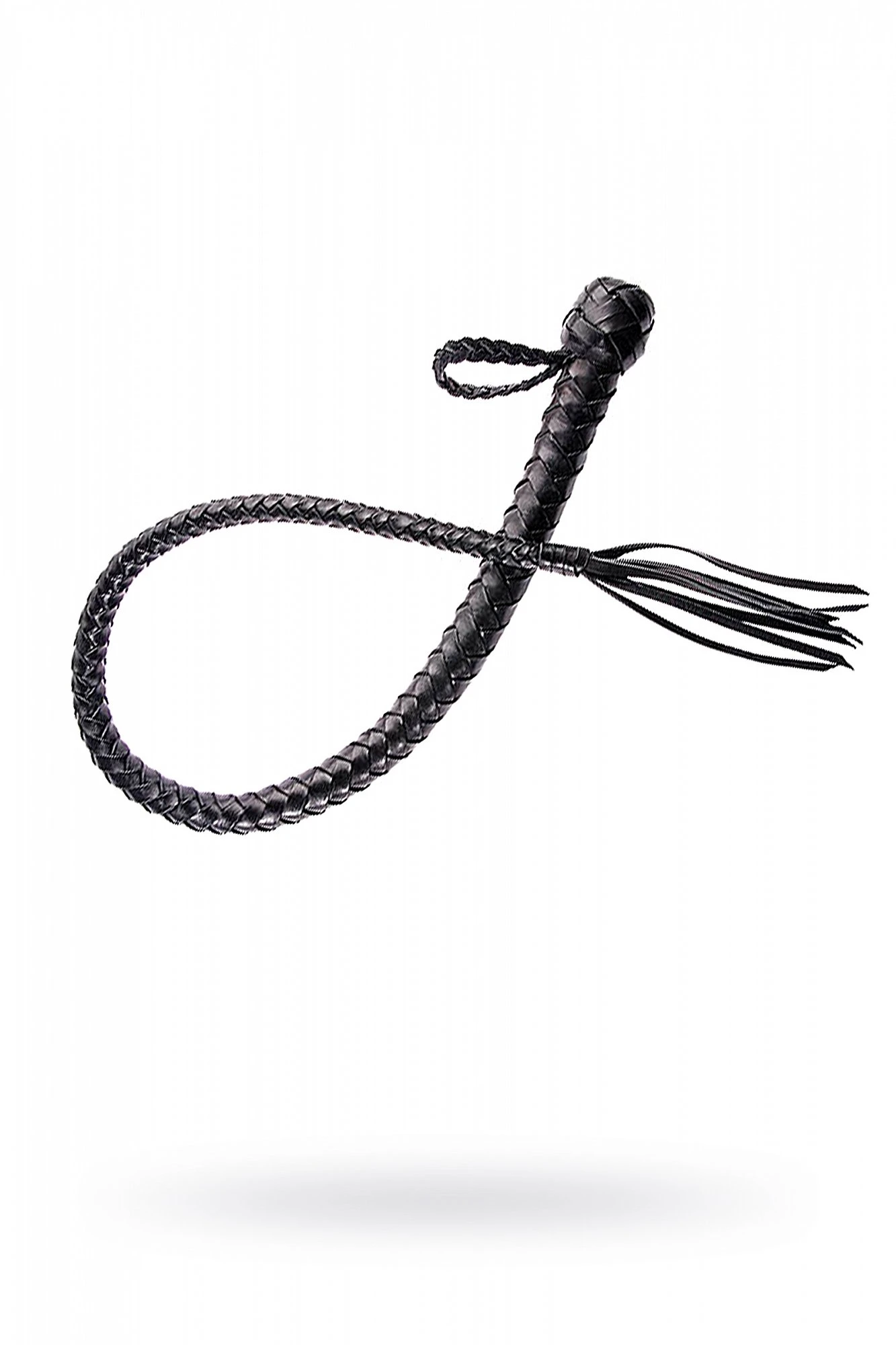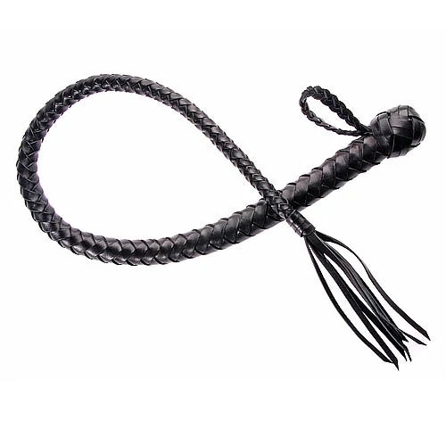 Однохвостая плеть имеет оплетенную жесткую рукоять и плетеное из мягкой кожи тело с сердечником из силикона. Тело плети заканчивается узлом и хлопушкой из той же кожи. Размер: общая длина 70-90 см. длина хлопушки 8 см. Цвет черный