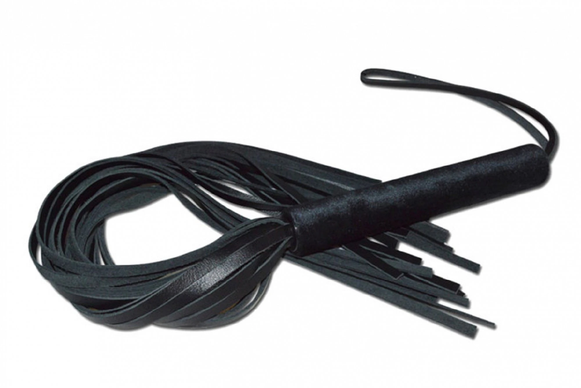 Классическая чёрная плеть – это один из основных атрибутов ролевых игр, при помощи которого, можно и поощрить, поглаживая, и наказать, более сильными ударами, и просто разогреть тело, для обострения тактильной и эмоциональной чувственности. Плеть имеет жёсткую 18 см ручку. Она обтянута бархатистой велюровой тканью. На конце рукояти располагается кожаная петля, для ношения плети на запястье или хранения изделия в подвешенном состоянии. Длинная 45 см хвостовая часть, состоит из 22-24 плоских лент из натуральной кожи Ладья, которые надёжно зафиксированы на рукояти, что даёт возможность использовать данный аксессуар в самых темпераментных и страстных ролевых играх. Хвосты плети довольно мягкие, что позволяет использовать данный девайс, не только опытным пользователям, но и новичкам. Размер: общая длина изделия около 63 см, длина рукояти 18 см. длина плеей 45 см, диаметр рукоятки 2,1 см
