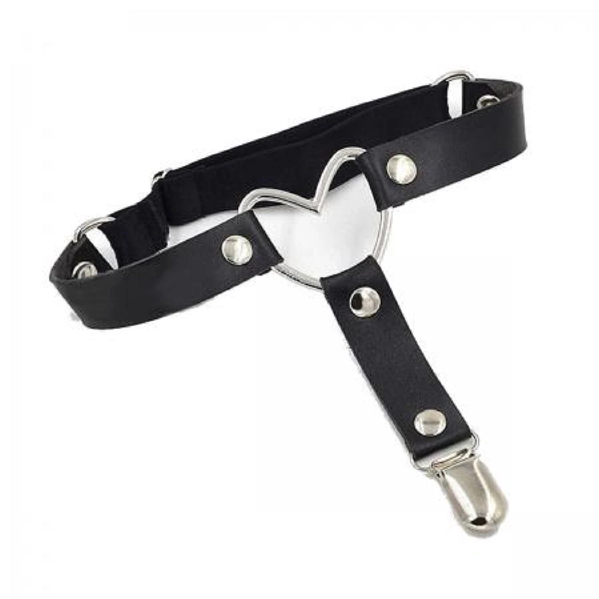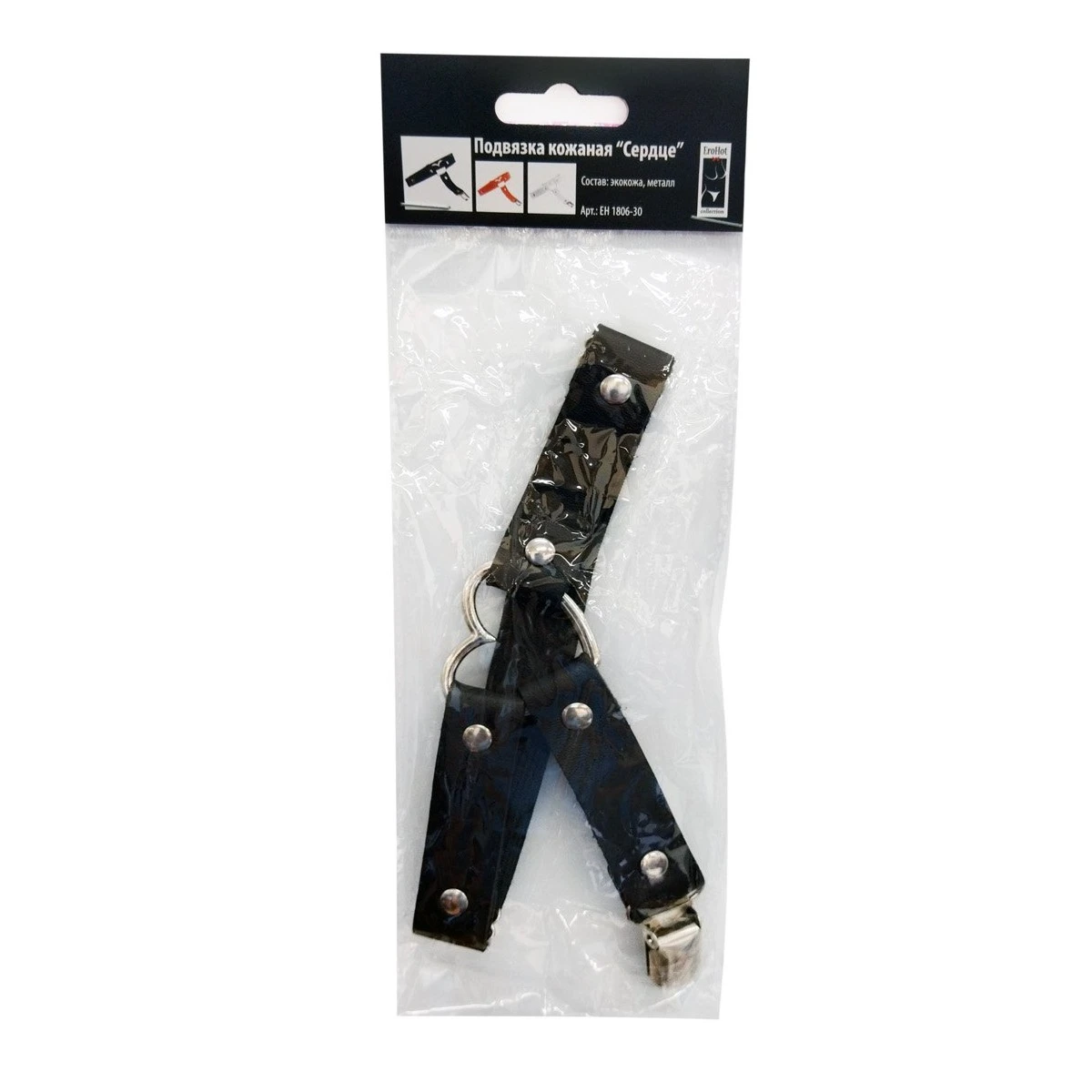 Подвязка для чулок Сердце сделана из мягкой искусственной кожи, сзади имеется резинка с регулятором обхвата повязки. Можно использовать как декоративную подвязку на ногу и приковать к себе внимание окружающих. Изделие оформлено металлическим украшением в виде сердца. Застёжки крепко держат чулок и не сломаются, т.к. изготовлены из металла. Размер: ширина 2 см. Цвет черный.
