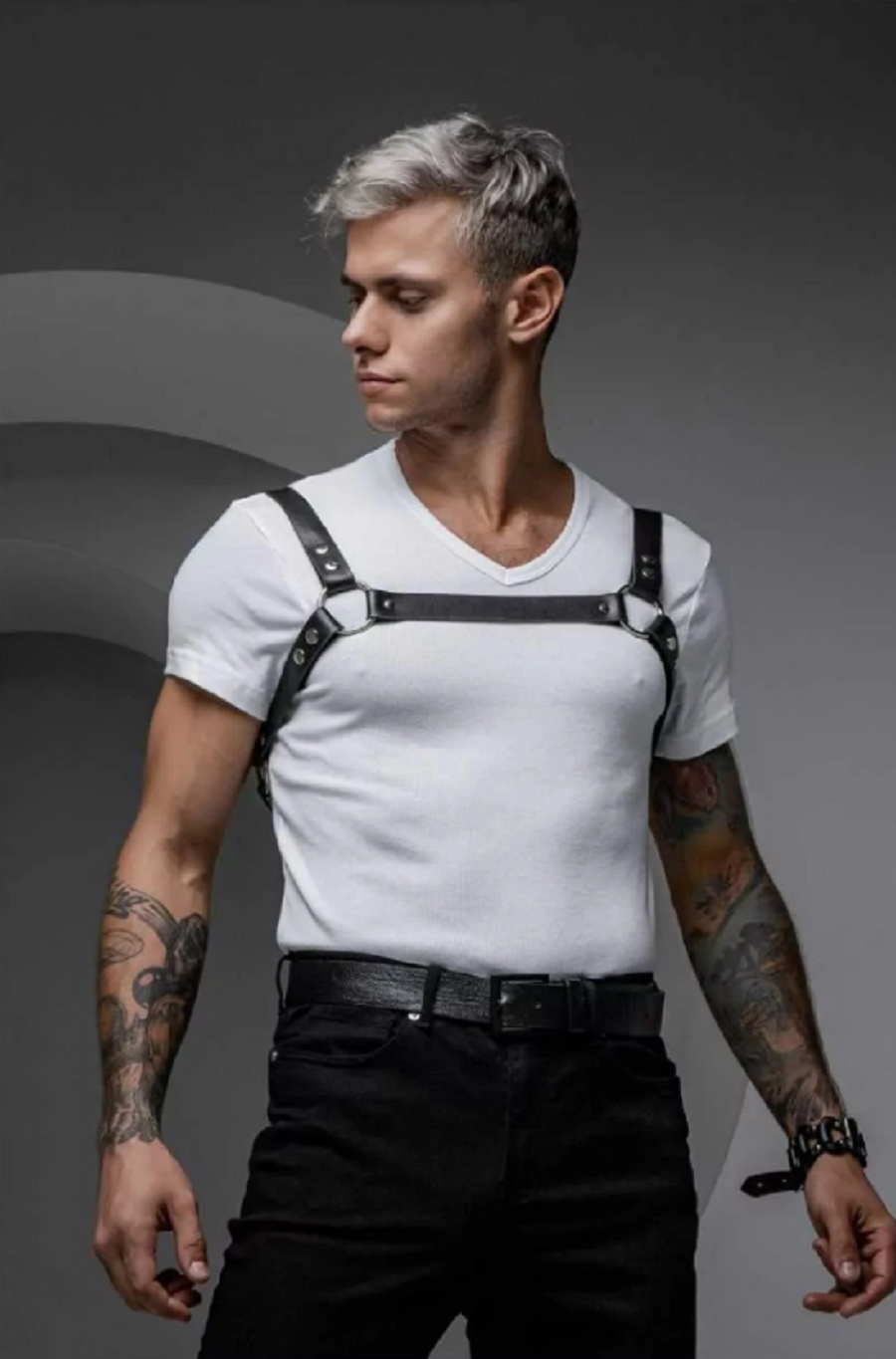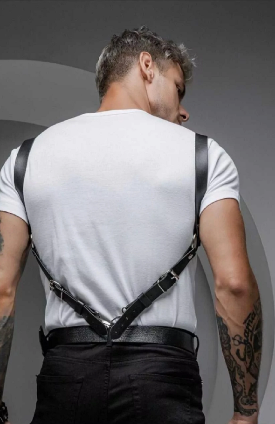 Уверенно охватывающая надежными кожаными ремнями, портупея гармонично подчеркивает мужское начало. Объемистые плечи, накаченный торс и мощные руки - вот, что может раскрыть портупея. Портупея Ra поможет окунуться в древний мир богов, где правит мощь, эстетика и желание.Регулируемые ремешки обеспечат идеальную посадку практически по любой фигуре. Ширина ремешков 2.5 см. Портупея изготовлена из натуральной кожи. Размер S/M. Цвет черный.