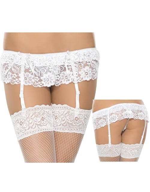 Ажурный пояс для чулок в комплекте со стрингами. Чулки в комплект не входят. Размер: S/M. Цвет: белый.
