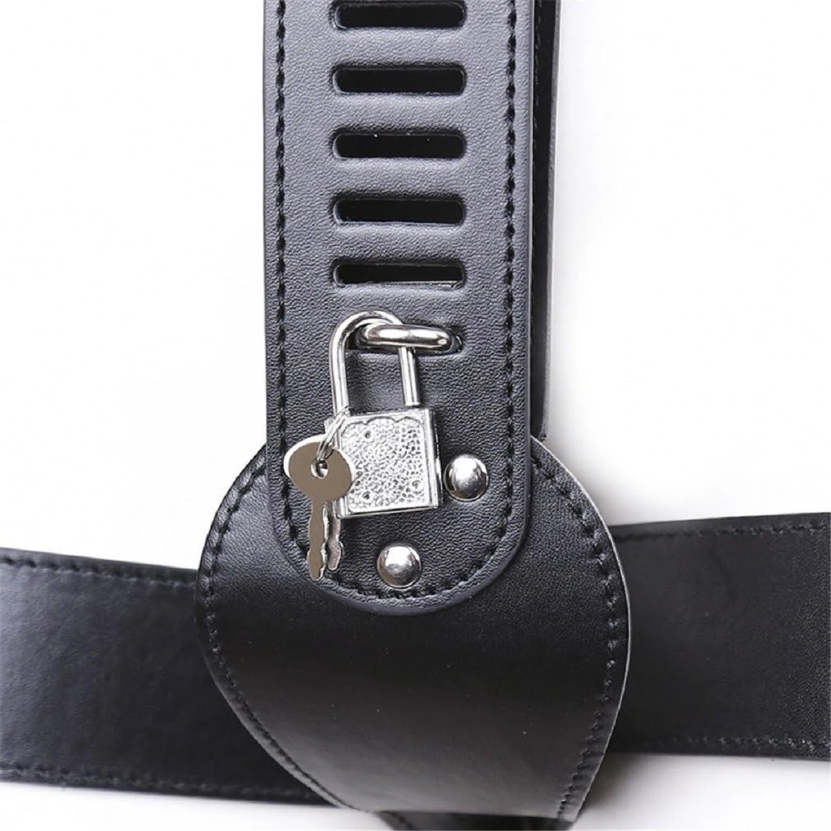 Пояс верности женский-это откровенный аксессуар для очень горячих БДСМ игр. Закройте интимные места любимой, сейчас только Вы решаете, когда ей будет разрешено снять пояс! Кожаные трусики черного цвета регулируются по размеру, поэтому хорошо сядут практически на любую фигуру. Выглядят не громоздко, поэтому в них можно отправиться на прогулку. В комплекте 4 ремня и 5 замочков, в комплекте к каждому по 2 ключика. Размер: длина пояса 104 см, длина ремня для промежности 82 см, длина ремней для бедер по 61 см. Цвет черный.